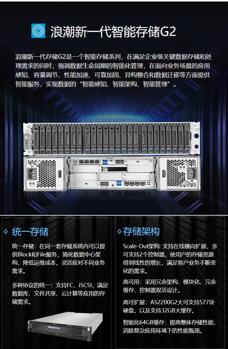 浪潮(INSPUR)AS2150G2 文件存储 专业磁盘阵列 AS2600G2 大盘/32GB/4*16GB FC/10*6TB 黑色