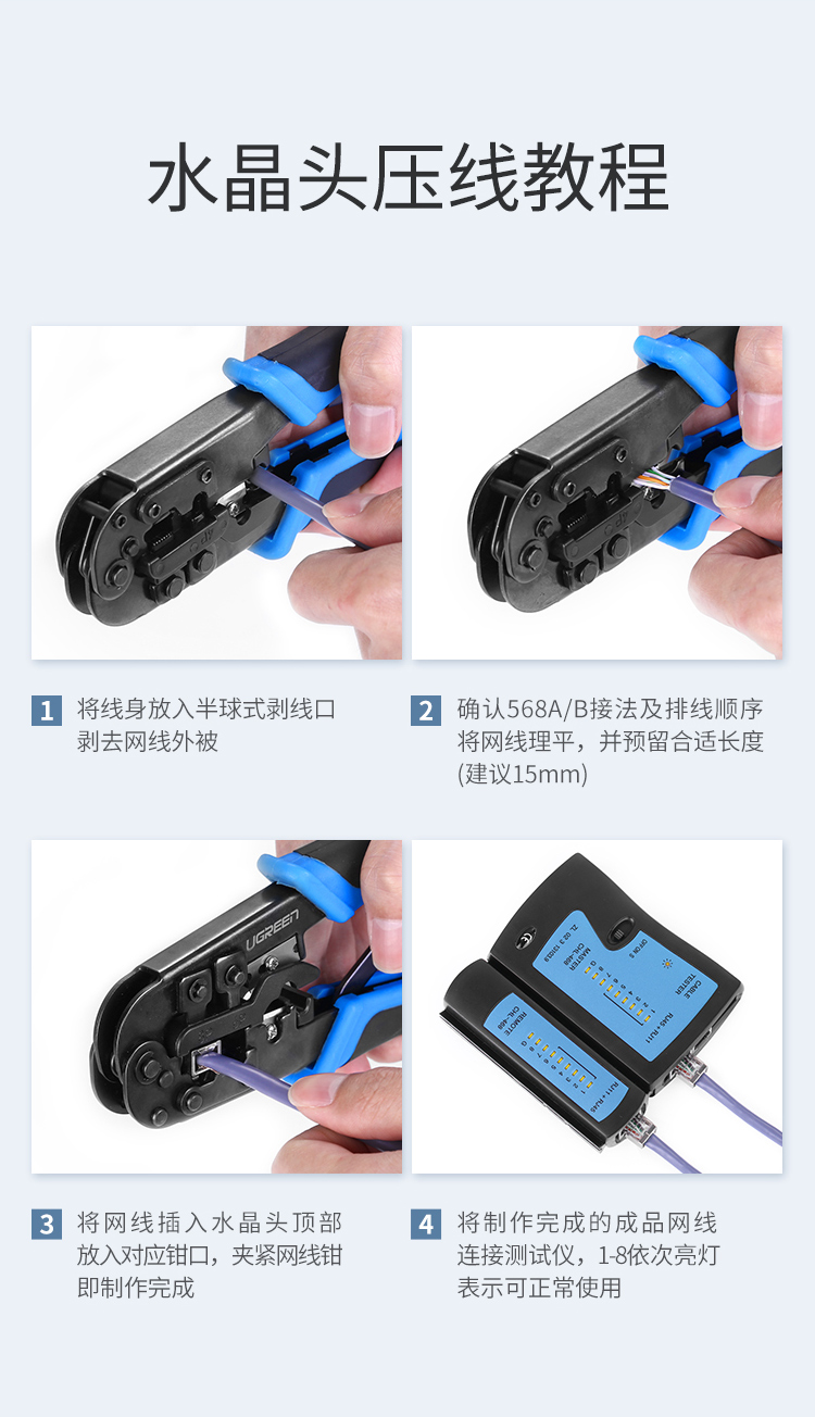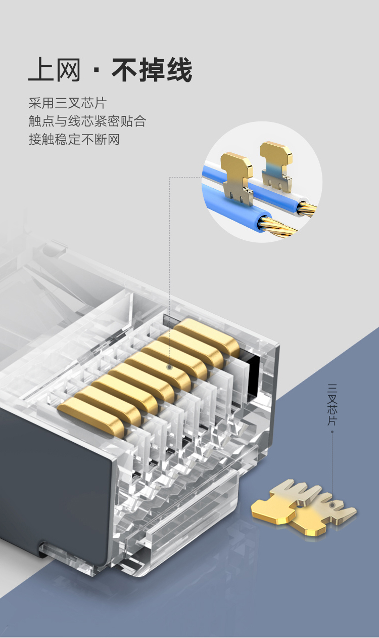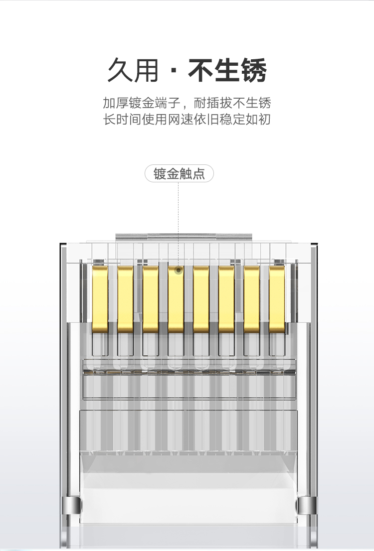 绿联 70316 超六类万兆水晶头 工程级网络接头 屏蔽带尾夹两件式10个装 白色