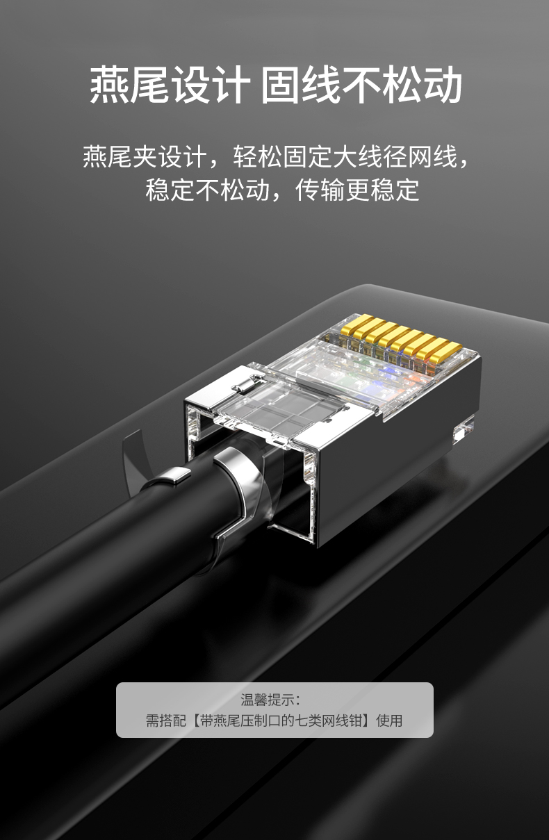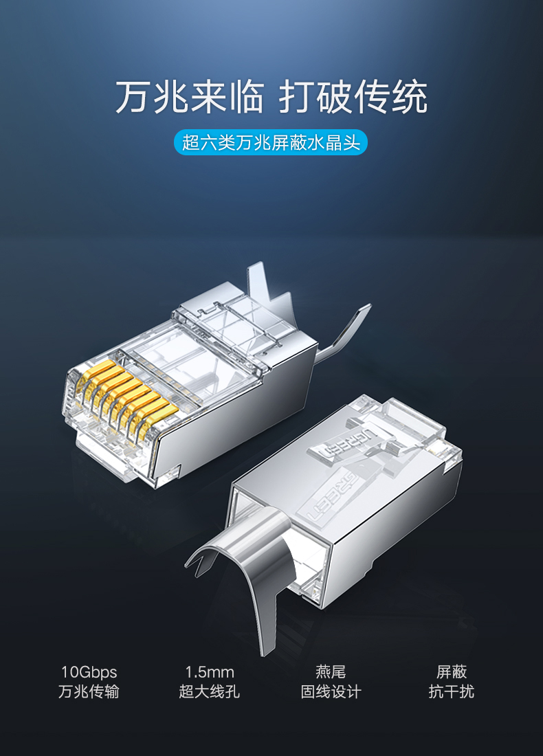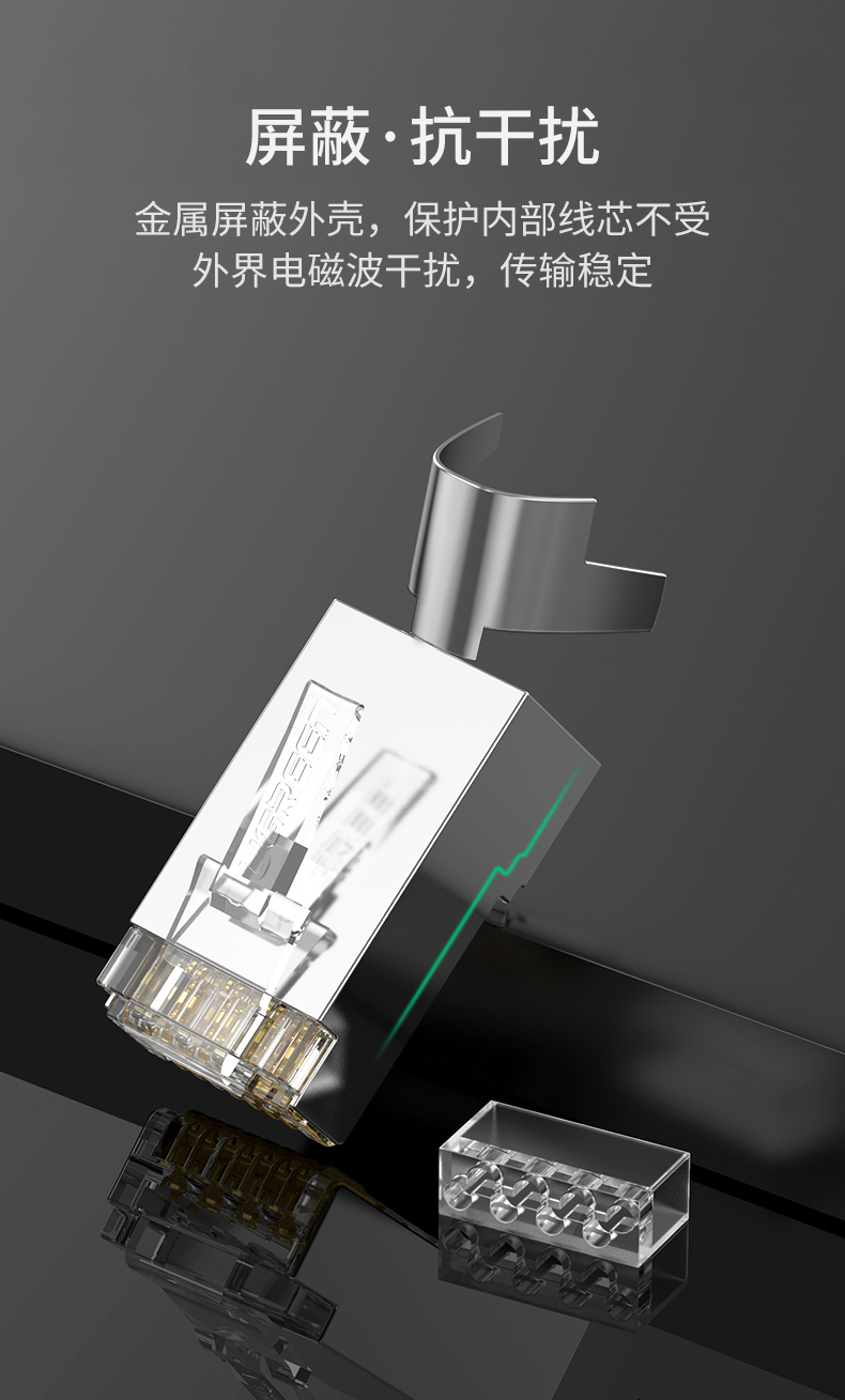 绿联 80828 超六类万兆水晶头 工程级网络接头 屏蔽带尾夹两件式100个装 白色