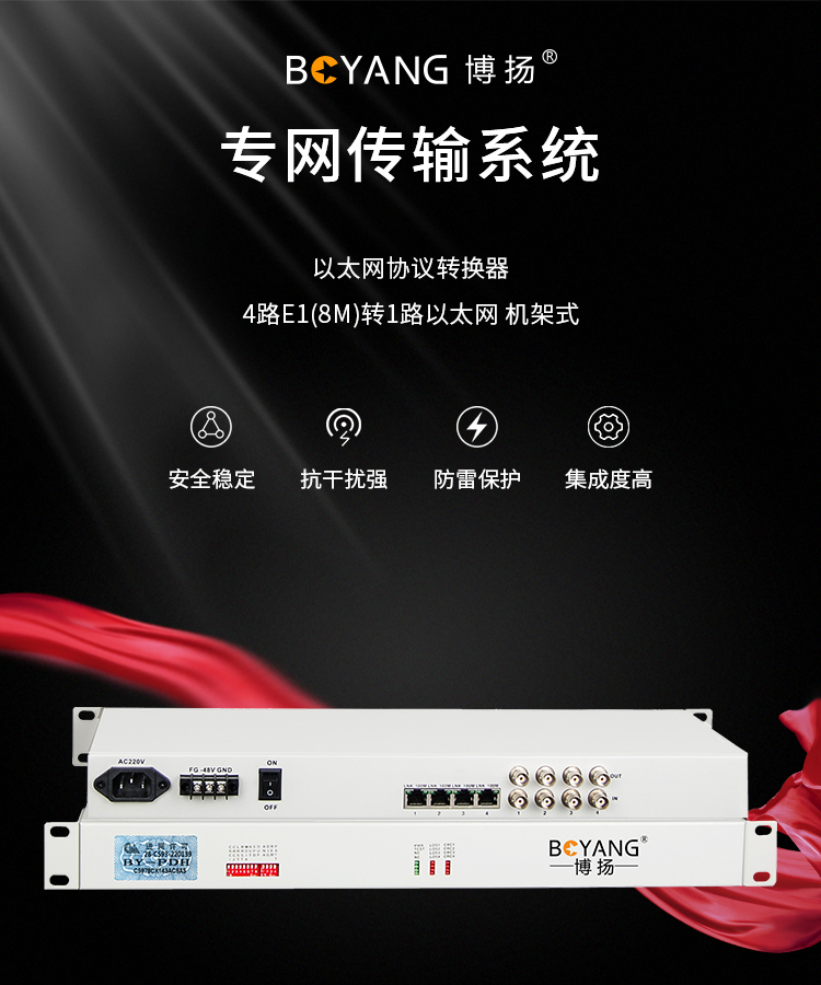 博扬(BOYANG)BY-E4F1 协议转换器 4路E1(8M)转1路以太网 机架式 1对价 白色