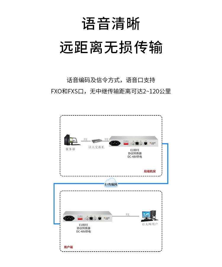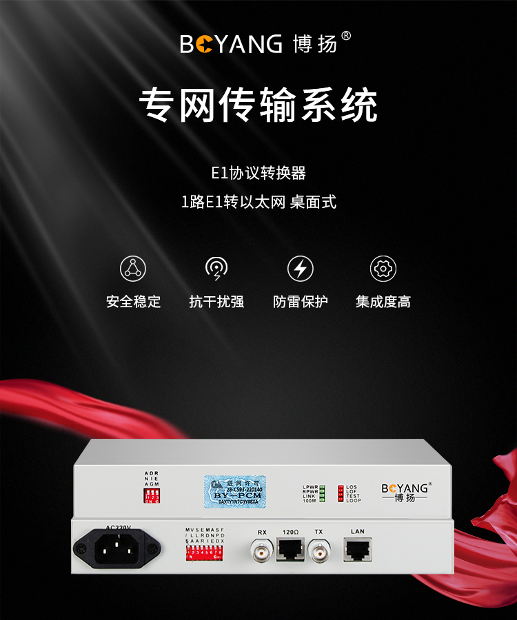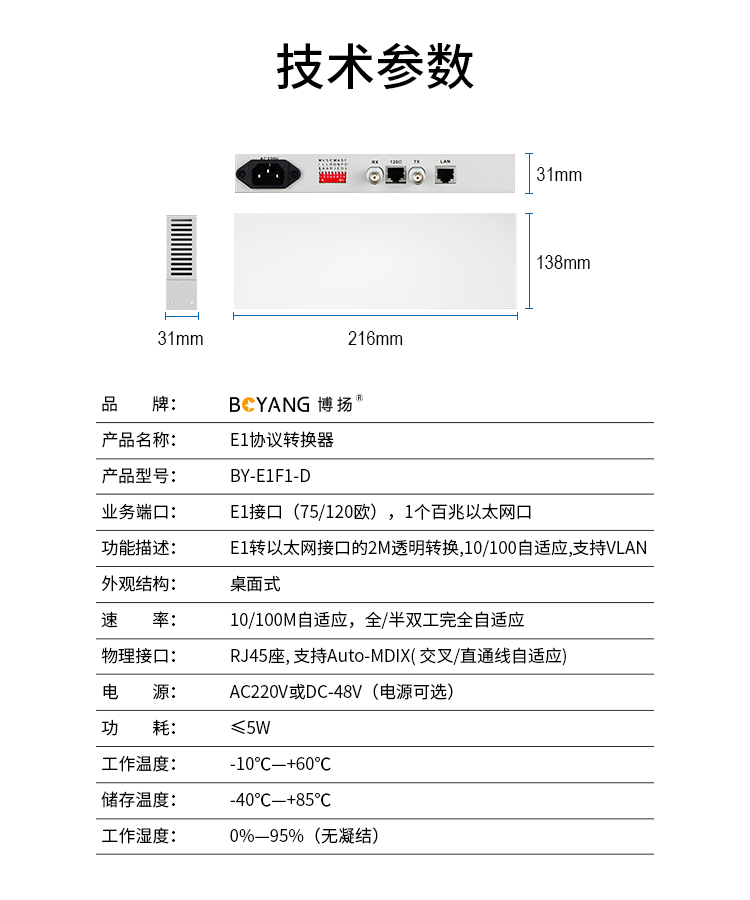 博扬 集中型协议转换器机框远端 E1协议转换器远端(桌面式) 1路E1转以太网 桌面式 1对价 BY-E1F1-D 白色