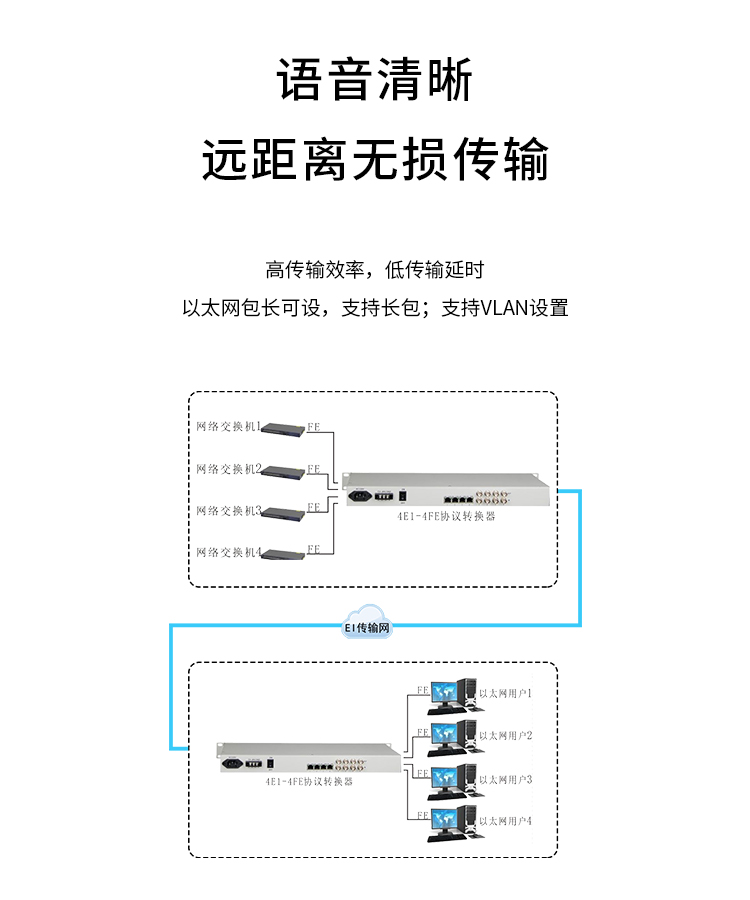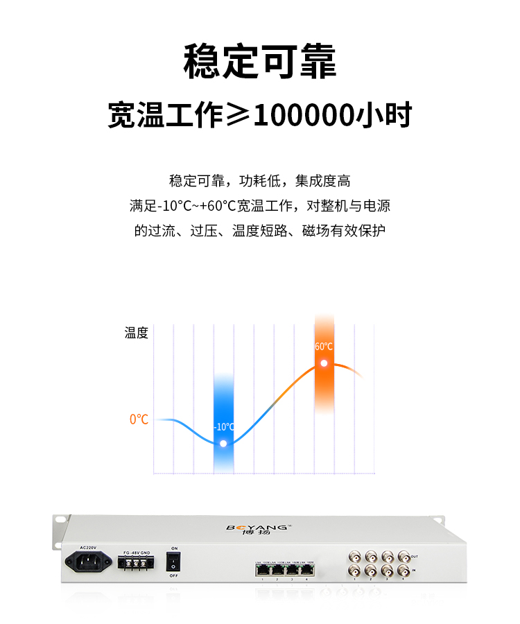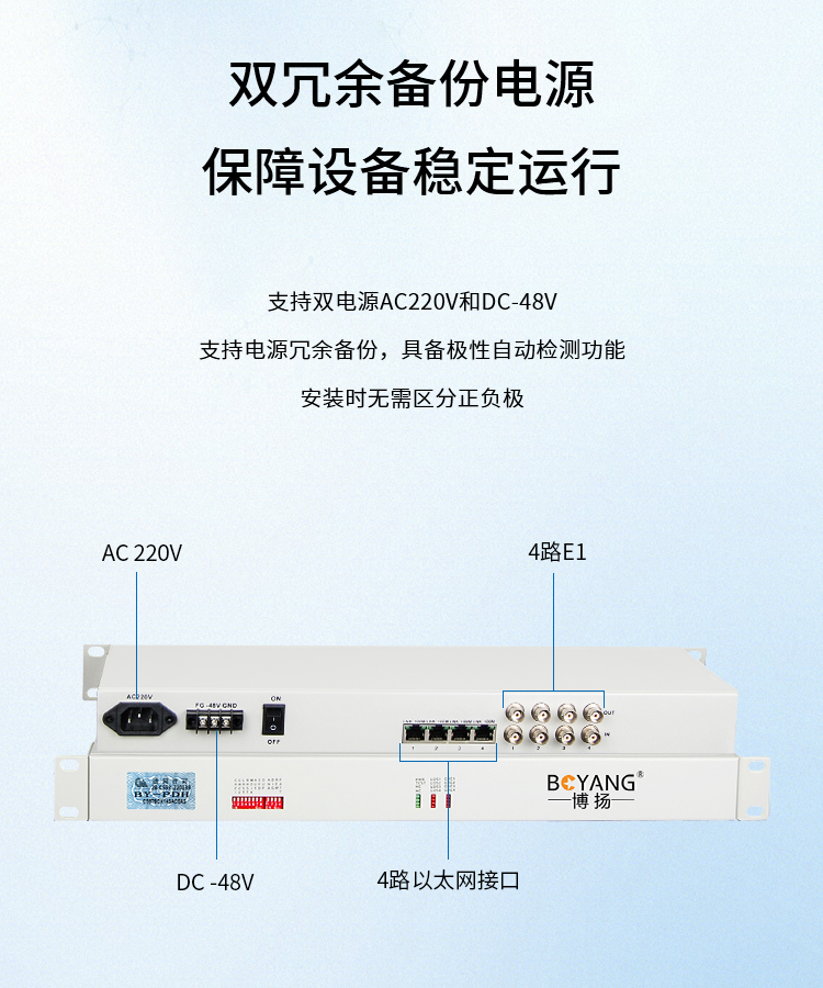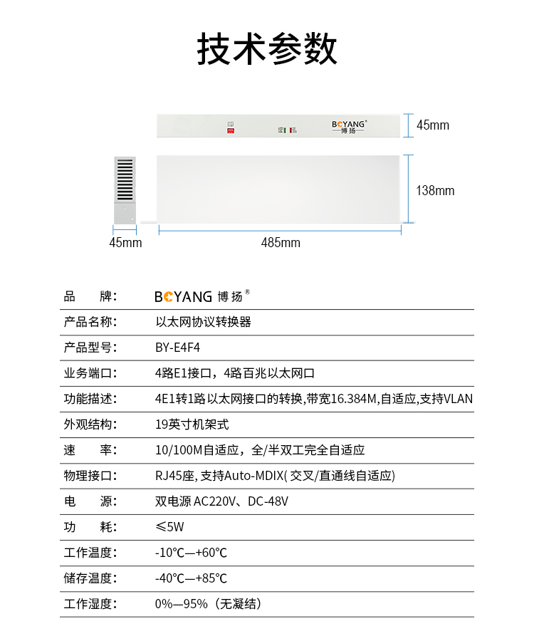 博扬(BOYANG)BY-E4F4 协议转换器 4路E1(8M)转4路以太网 机架式 1对价 白色