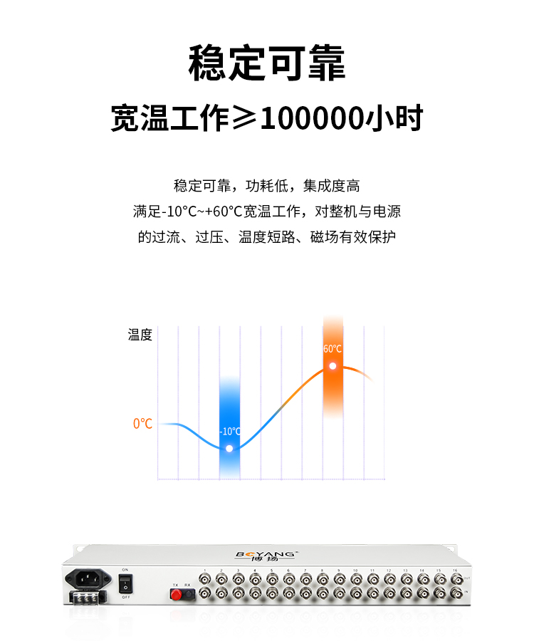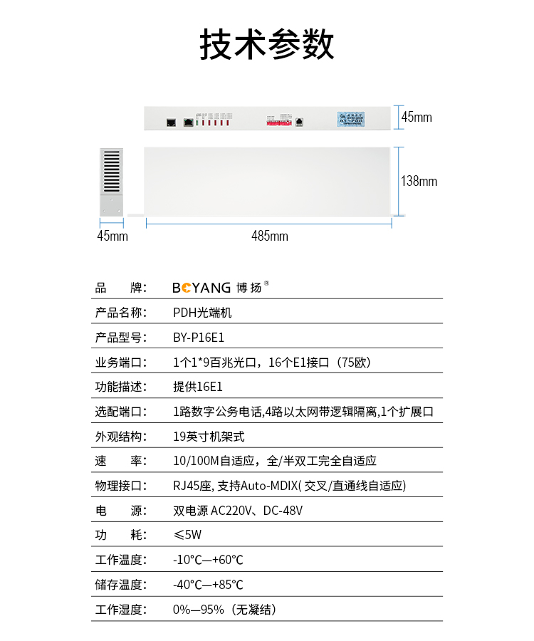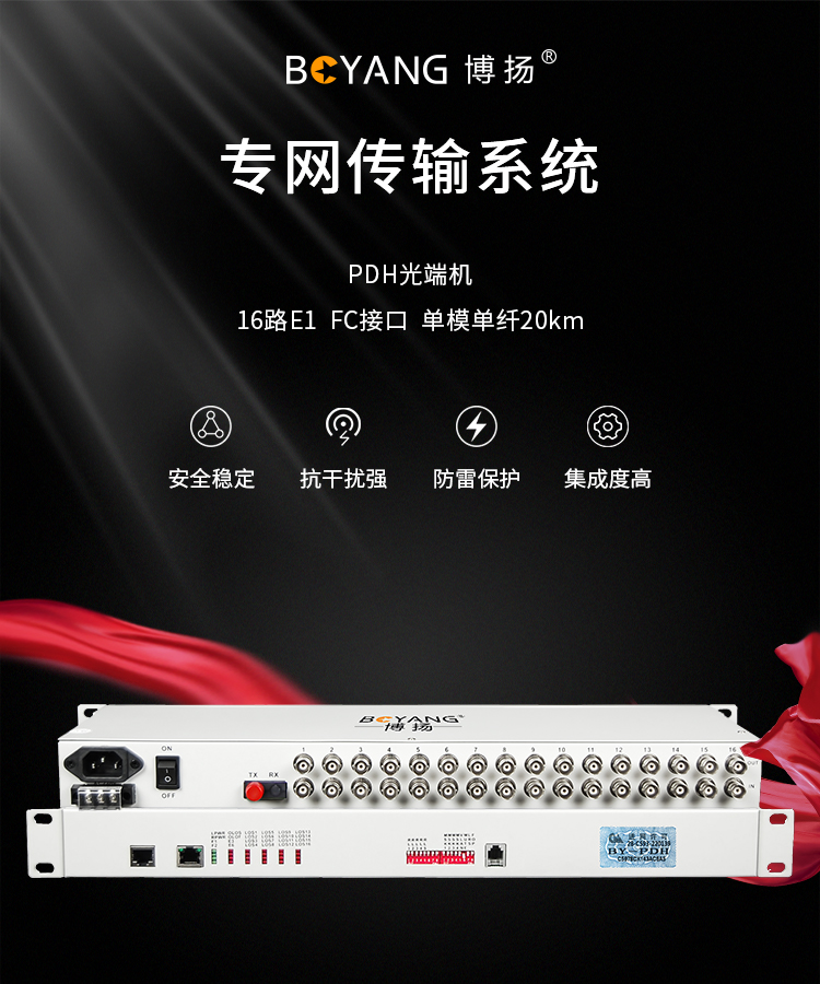 博扬(BOYANG)BY-P16E1 PDH光端机16路E1 16路2M光端机 光纤收发器 FC单纤20公里 机架式 双电源 白色