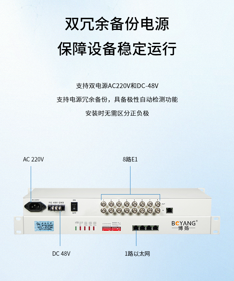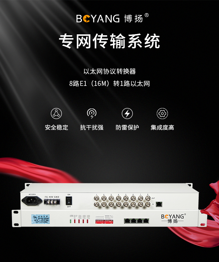 博扬(BOYANG)BY-E8F1 协议转换器 8路E1(16M)转1路以太网 机架式 1对价 白色