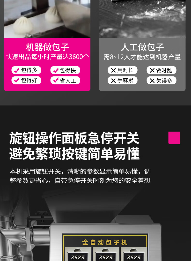 乐创(lecon)商用包子机 500-3600个/h仿手工包子一体机 直供输馅 LC-J-BZ160 白色