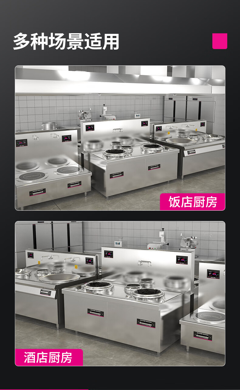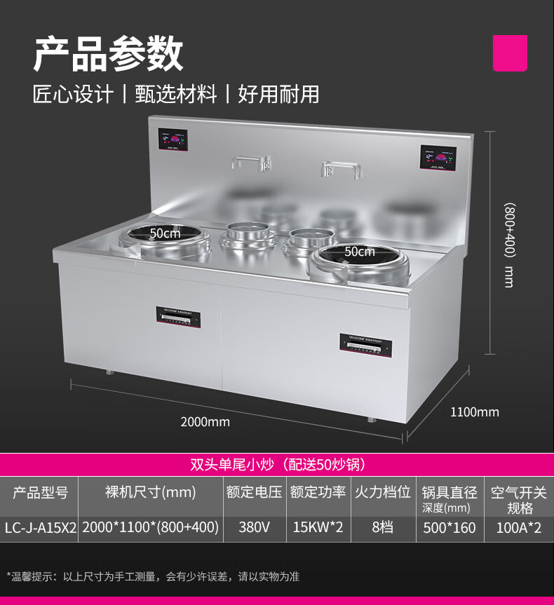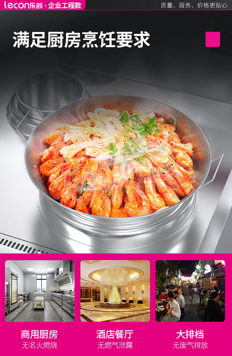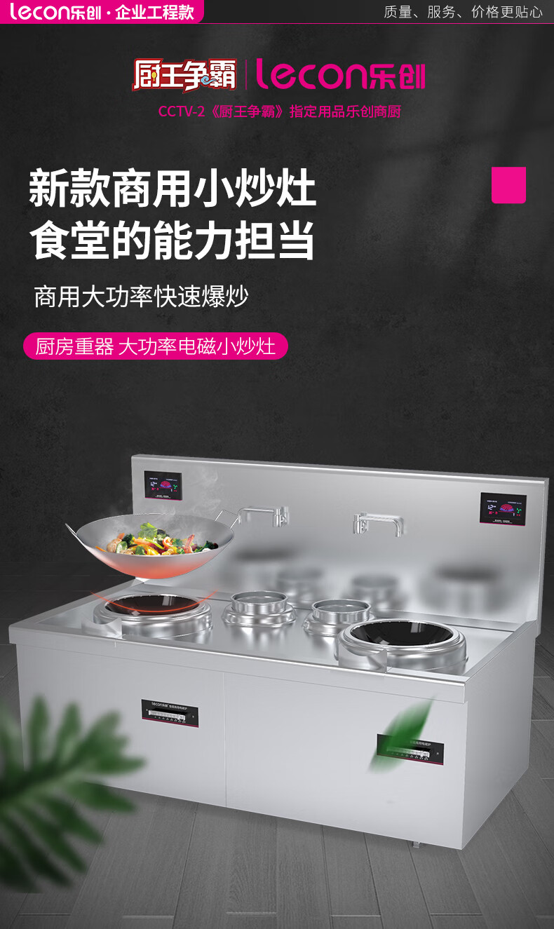 乐创(lecon)商用电磁双头双尾小炒灶 15KW*2大功率酒店饭堂企业炒灶 380V LC-J-A15X2 曜石黑