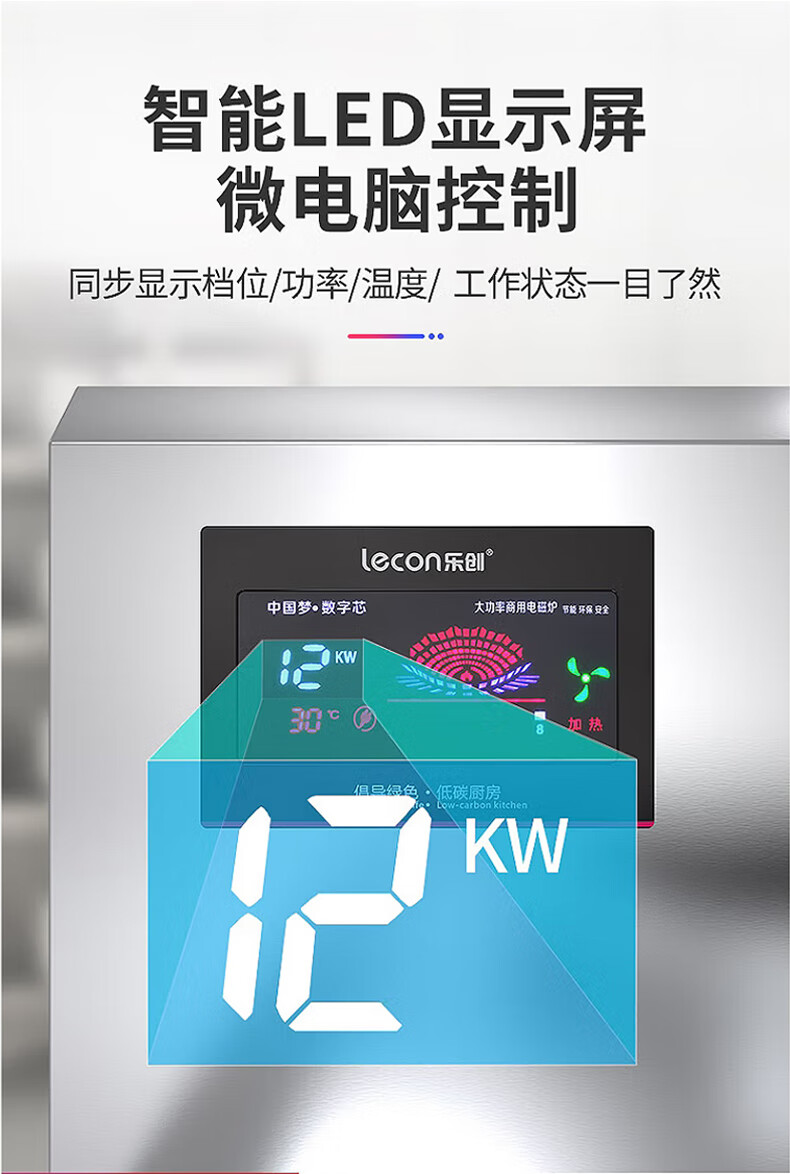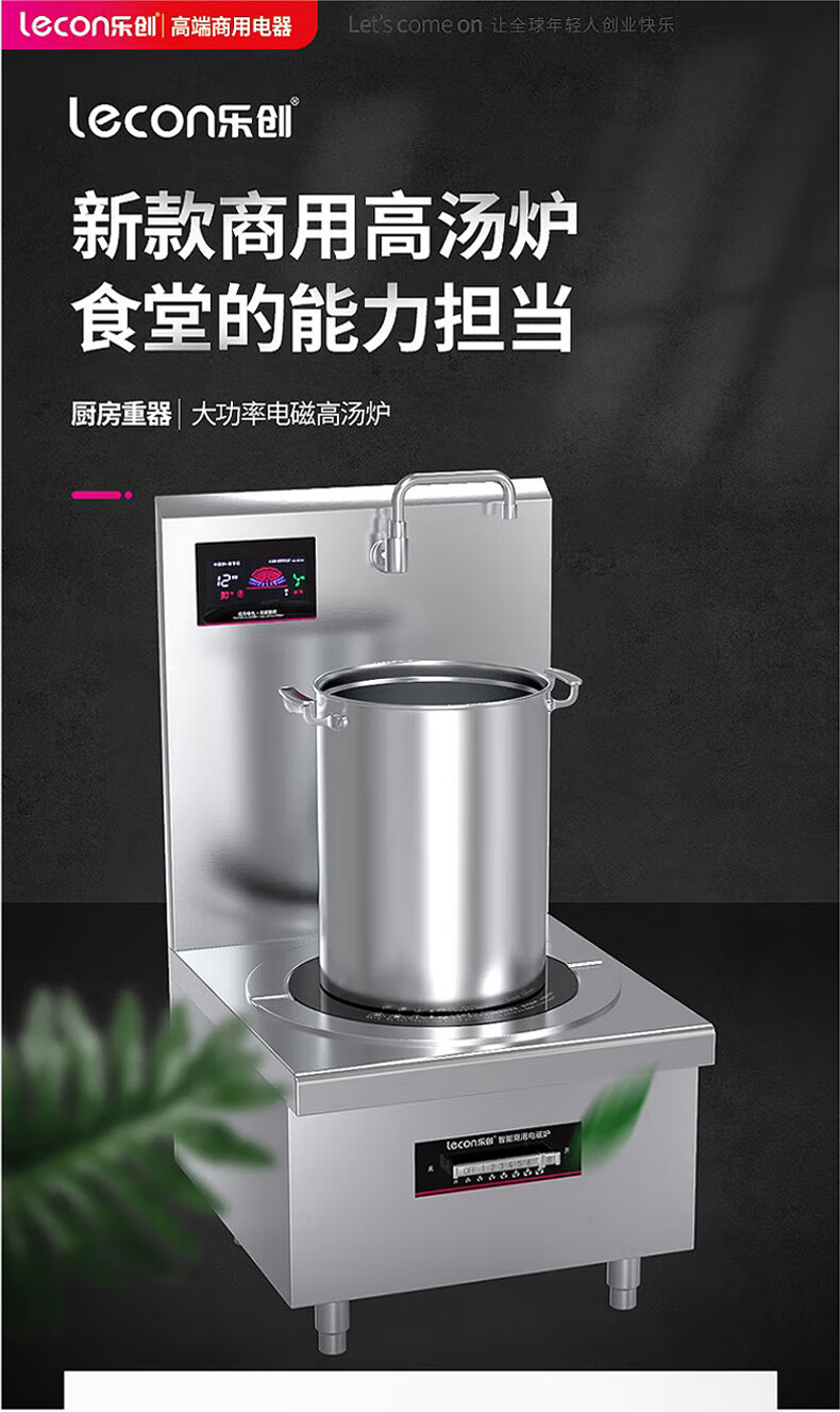 乐创(lecon)商用电磁单头矮汤灶 12KW大功率酒店饭堂企业炒灶 380V LC-J-P12G 曜石黑