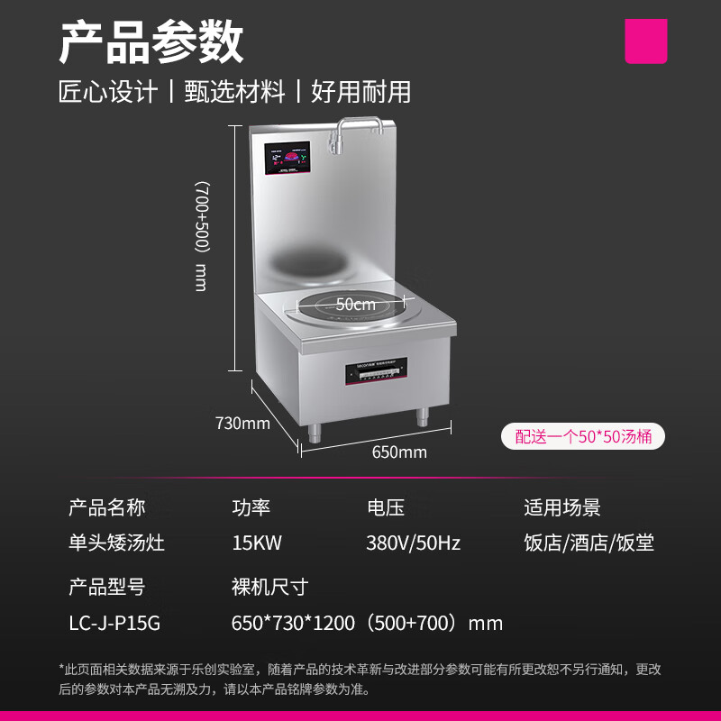 乐创(lecon)商用电磁单头矮汤灶 15KW大功率酒店饭堂企业炒灶 380V LC-J-P15G 曜石黑