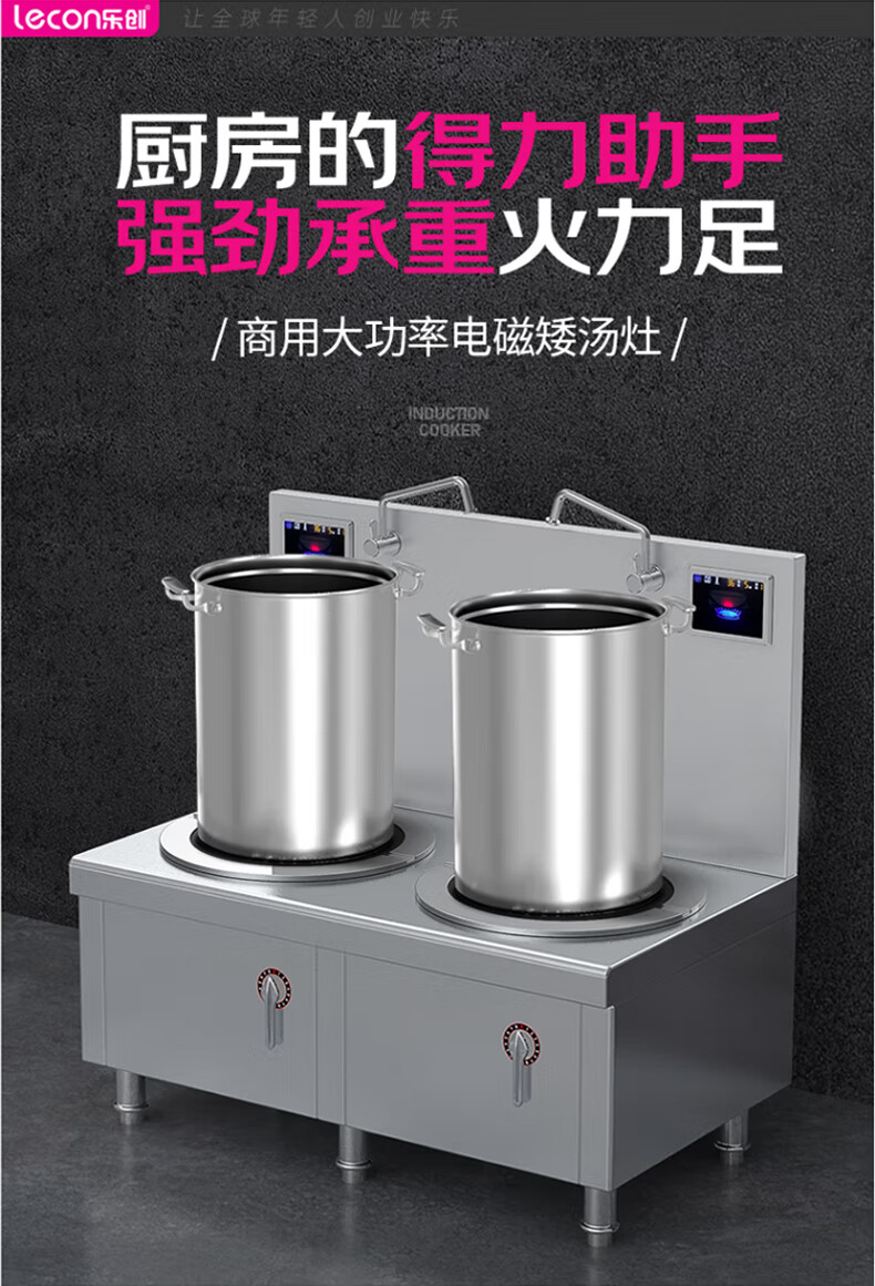 乐创( lecon) 商用双头矮汤炉 15KW*2大功率学校食堂熬汤高背汤灶 201不锈钢工程款 LC-J-STL15P 银色