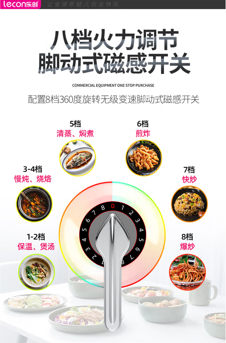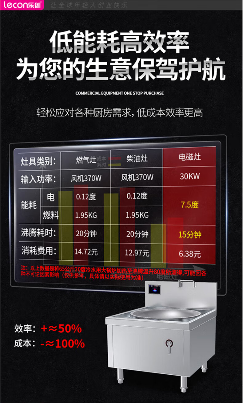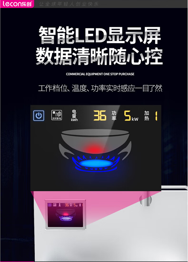 乐创(lecon)商用单头大锅灶 锅径800 20KW大功率食堂炒菜电磁灶 304不锈钢工程款 LC-J-DC800S20 银色
