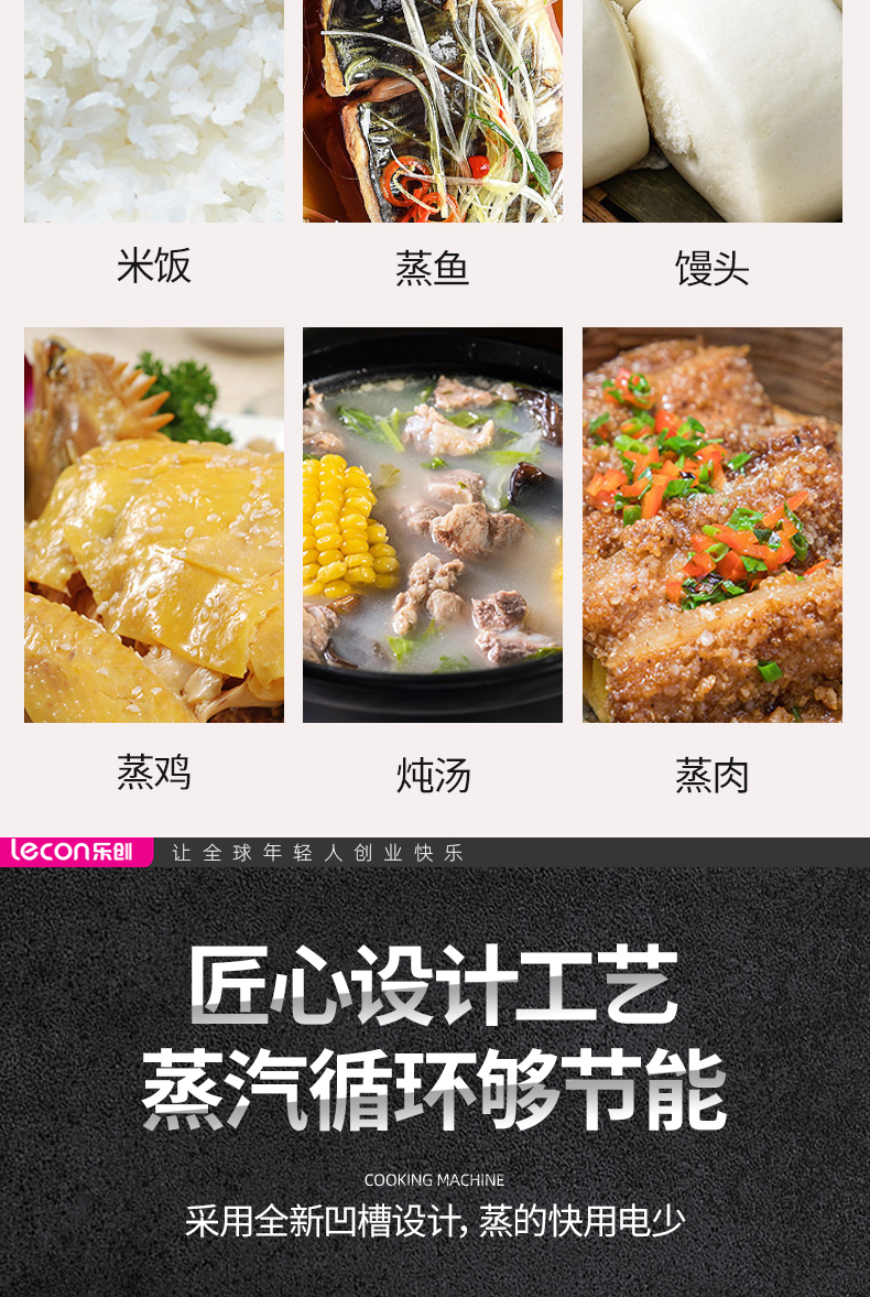 乐创 (lecon)商用蒸饭柜 酒店餐饮食堂电蒸箱蒸包馒头 24盘微智能定时款 LC-J-KZ240 曜石黑