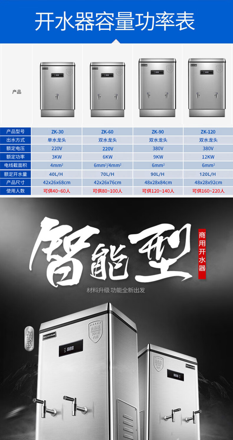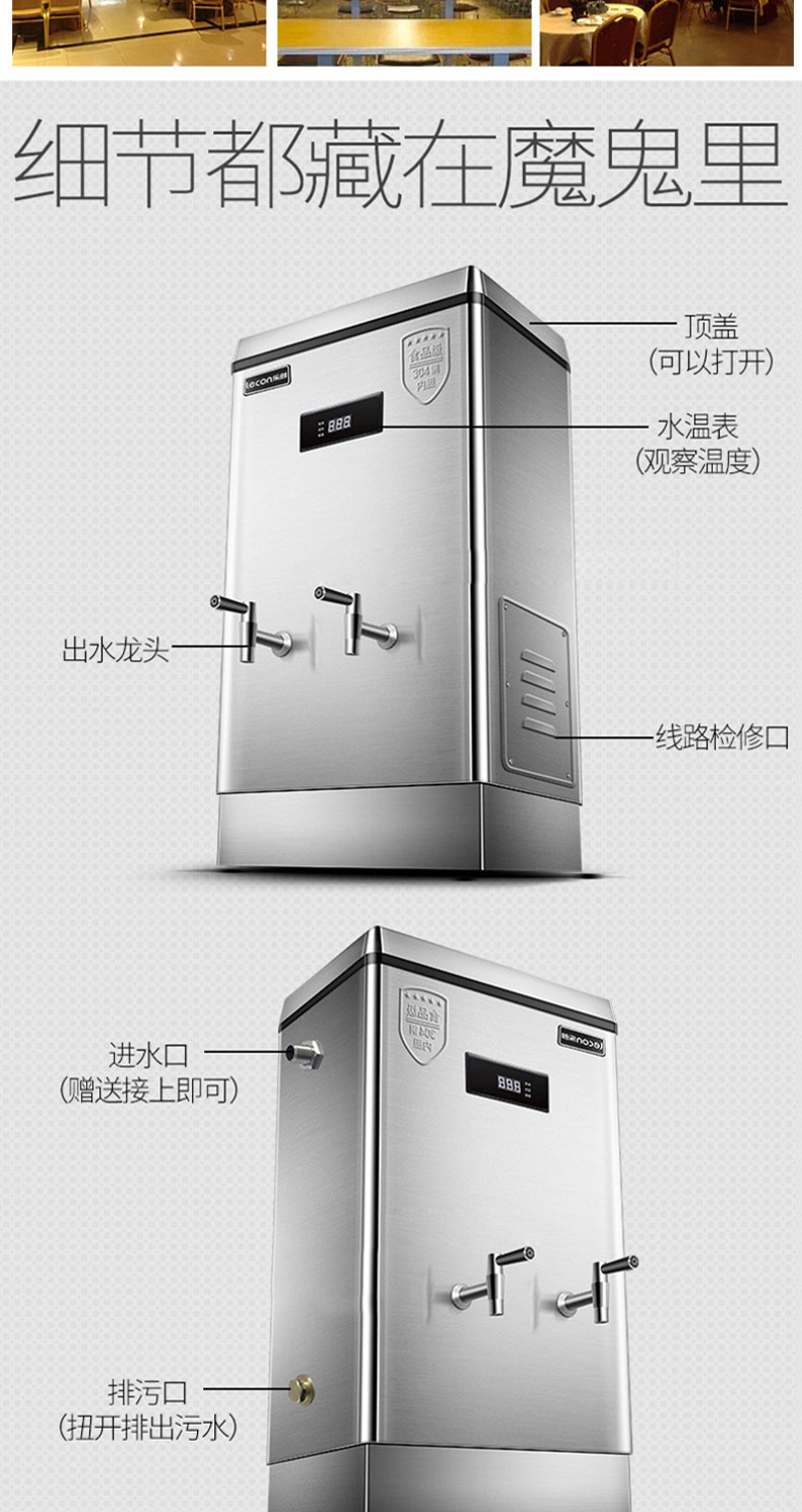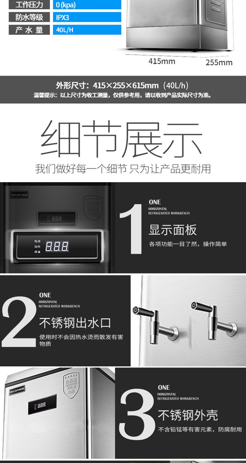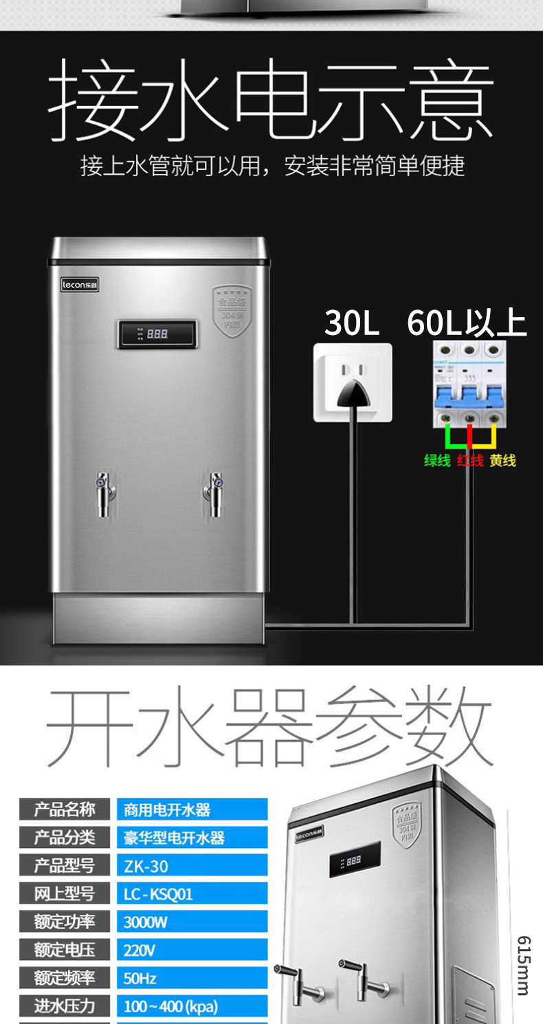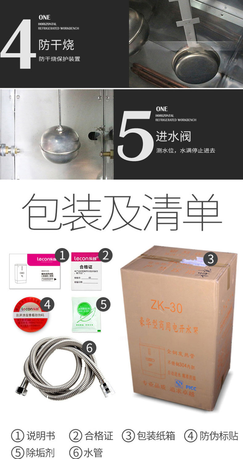 乐创(lecon)商用开水器电热烧水器烧水桶不锈钢大容量工厂饮水机餐饮店设备 120L/H 标准款ZK-120 银色