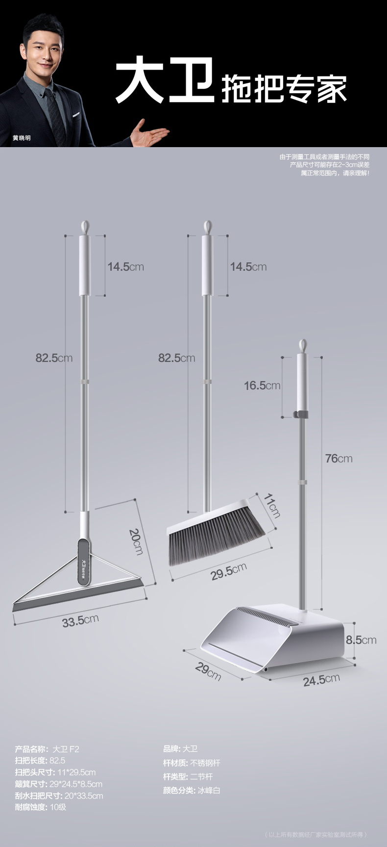 大卫 F2+F6 扫把簸箕组合套装家用扫地神器扫帚魔术刮水器大号套装(单位:套) 白色