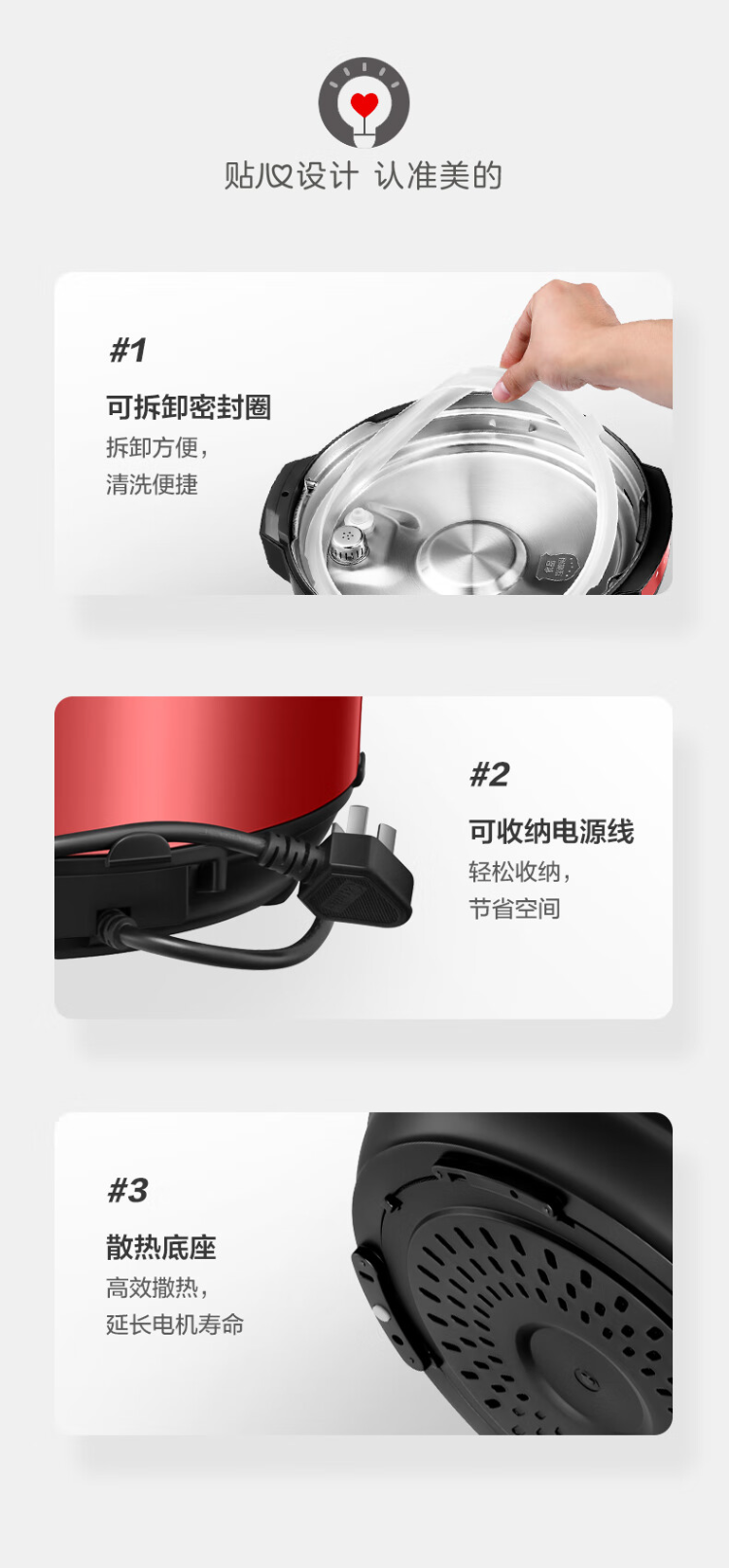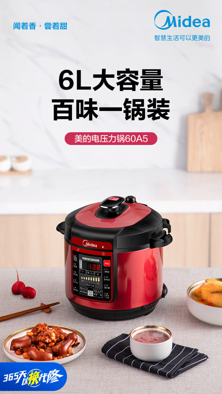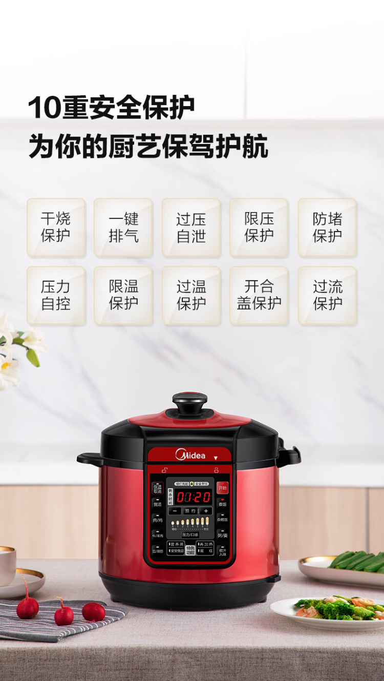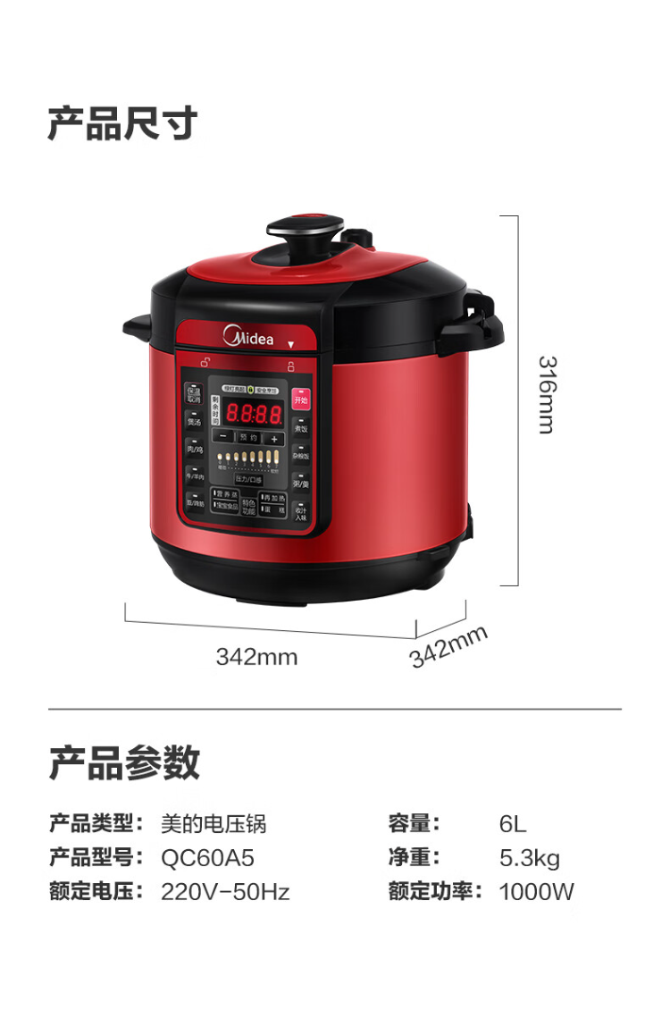 美的(Midea)电压力锅 MY-QC60A5 家用多功能高压锅 6L(单位:台) 红色