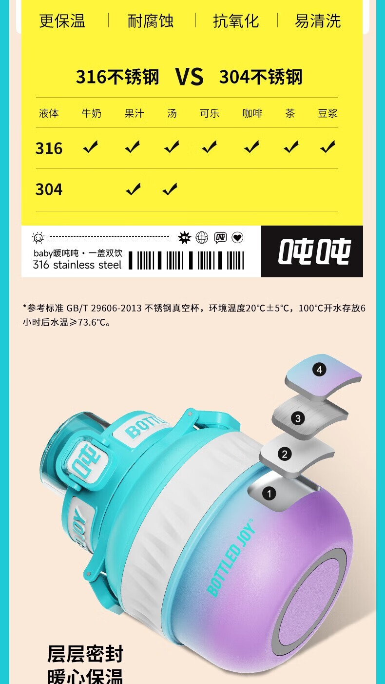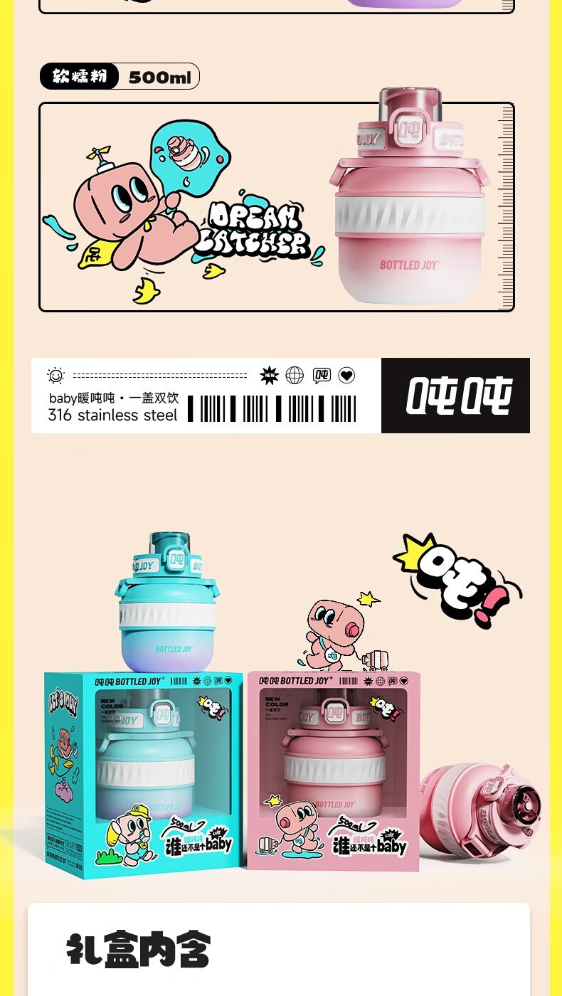 BOTTLED JOY吨吨 BABY暖吨吨SUS316 0.5LBABY吨吨保温杯(单位:个) 软糯粉