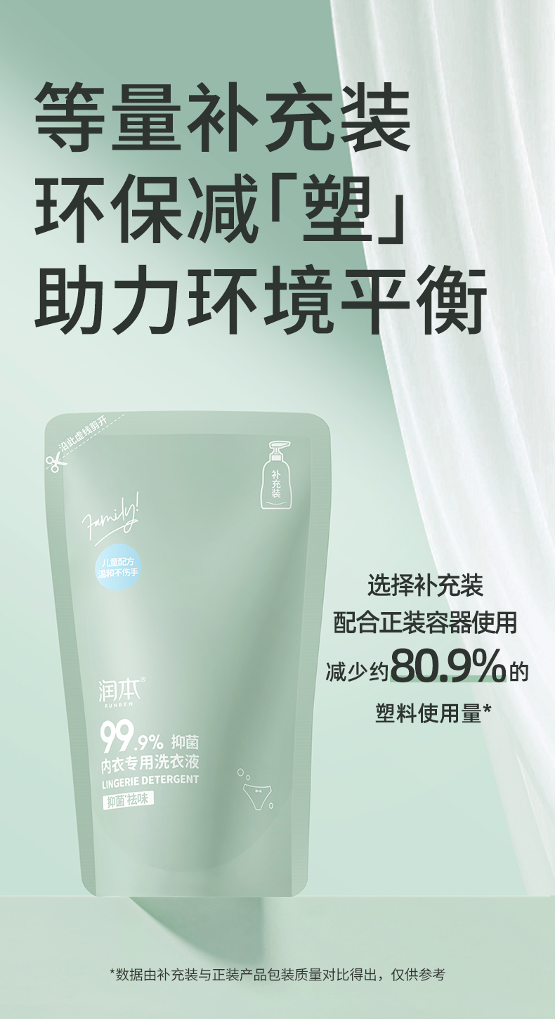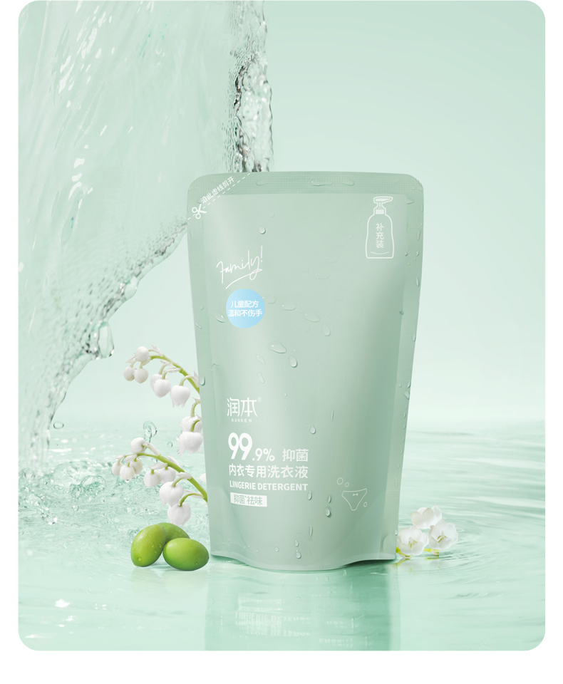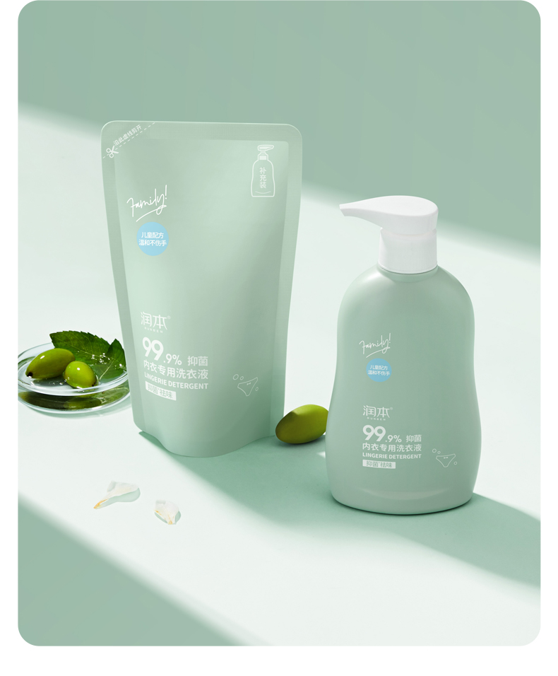 润本内衣专用洗衣液300ml(补充袋)盒 绿色