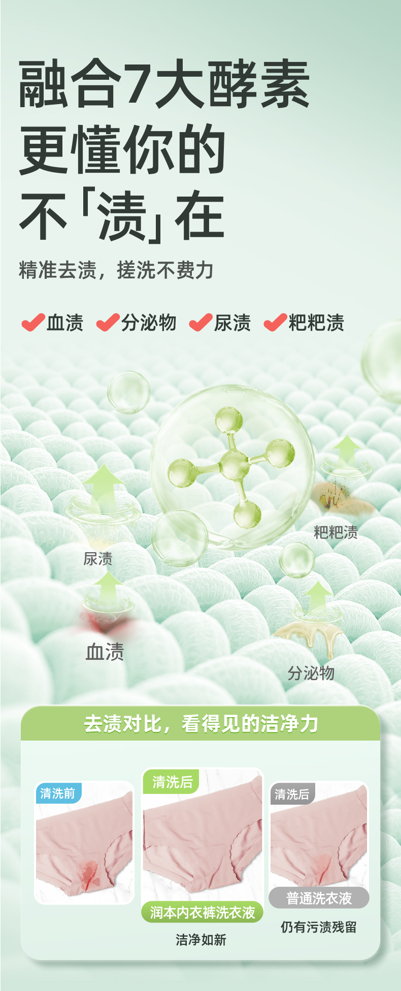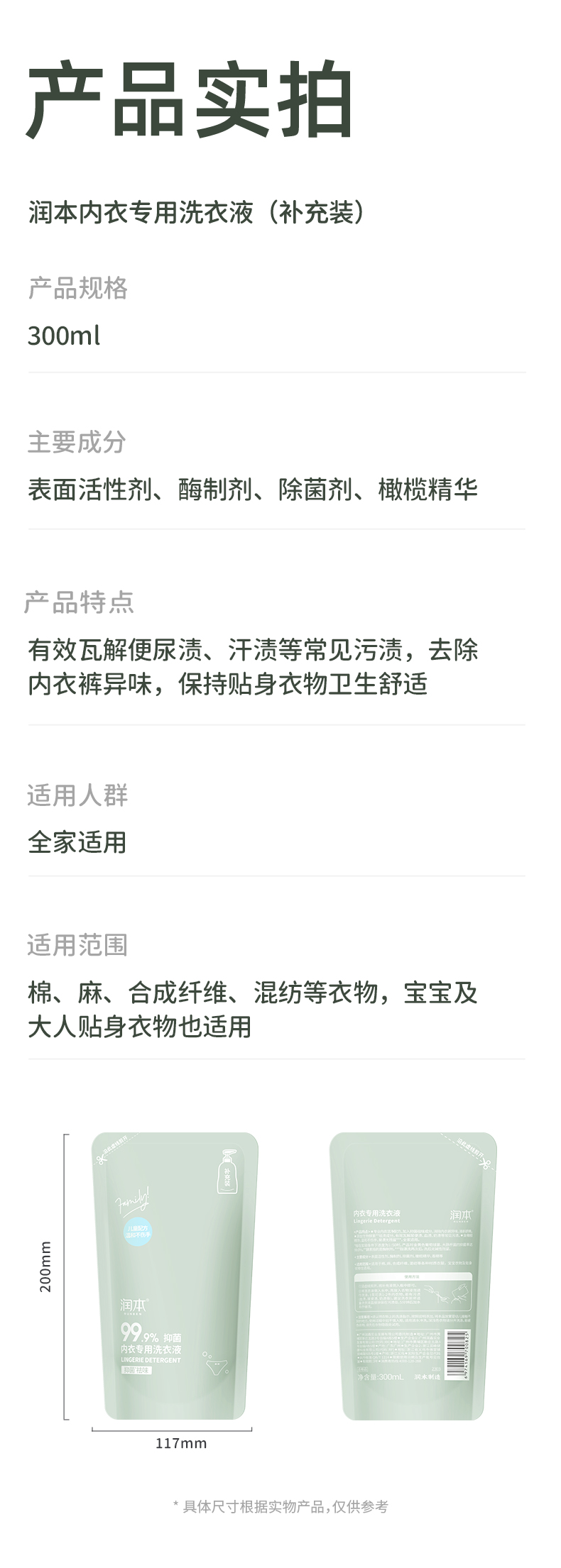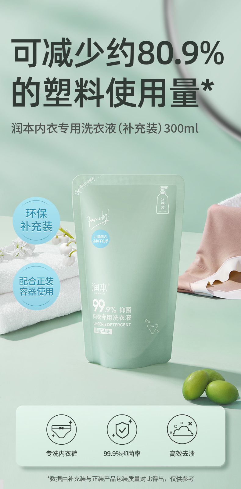 润本内衣专用洗衣液300ml(补充袋)盒 绿色