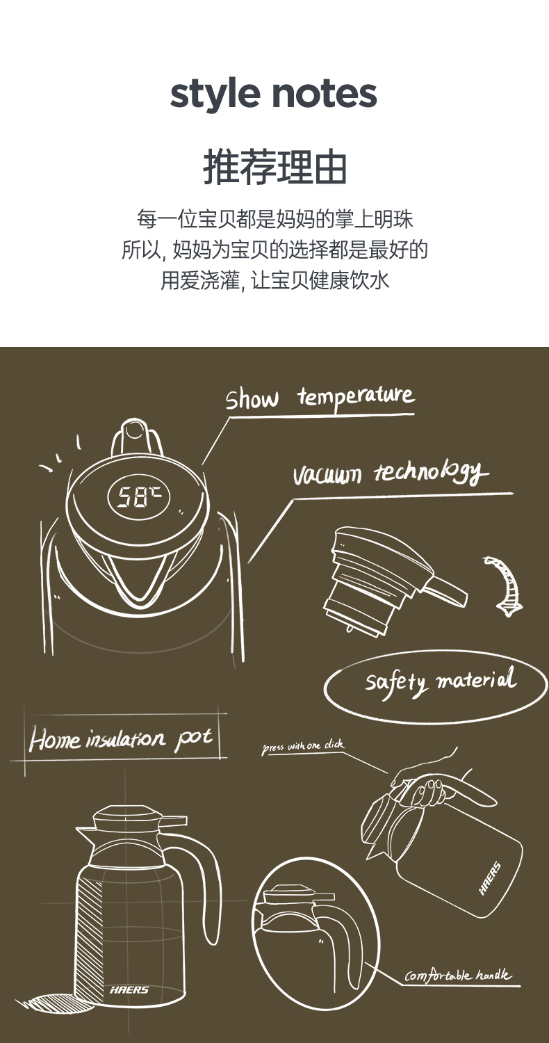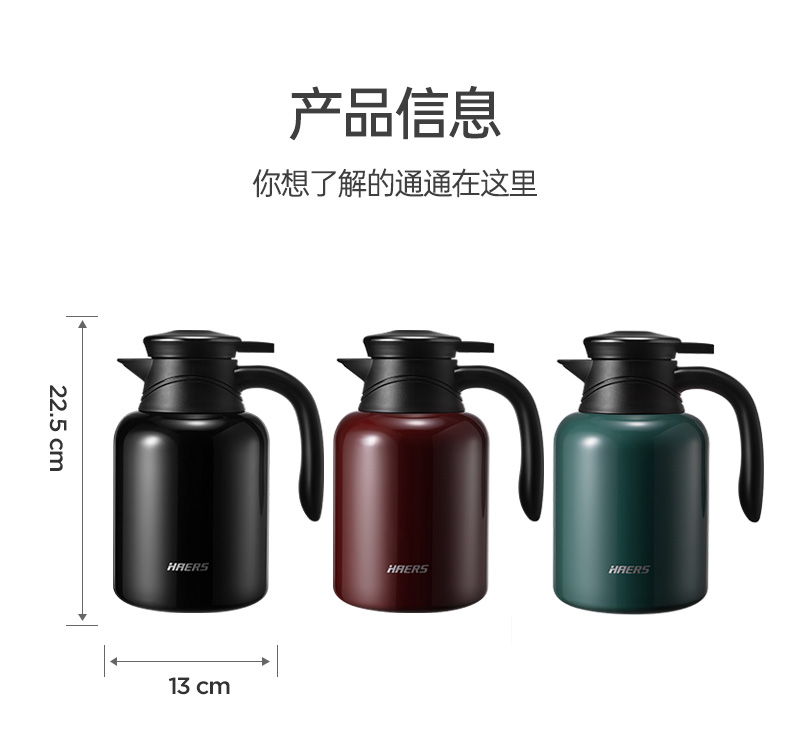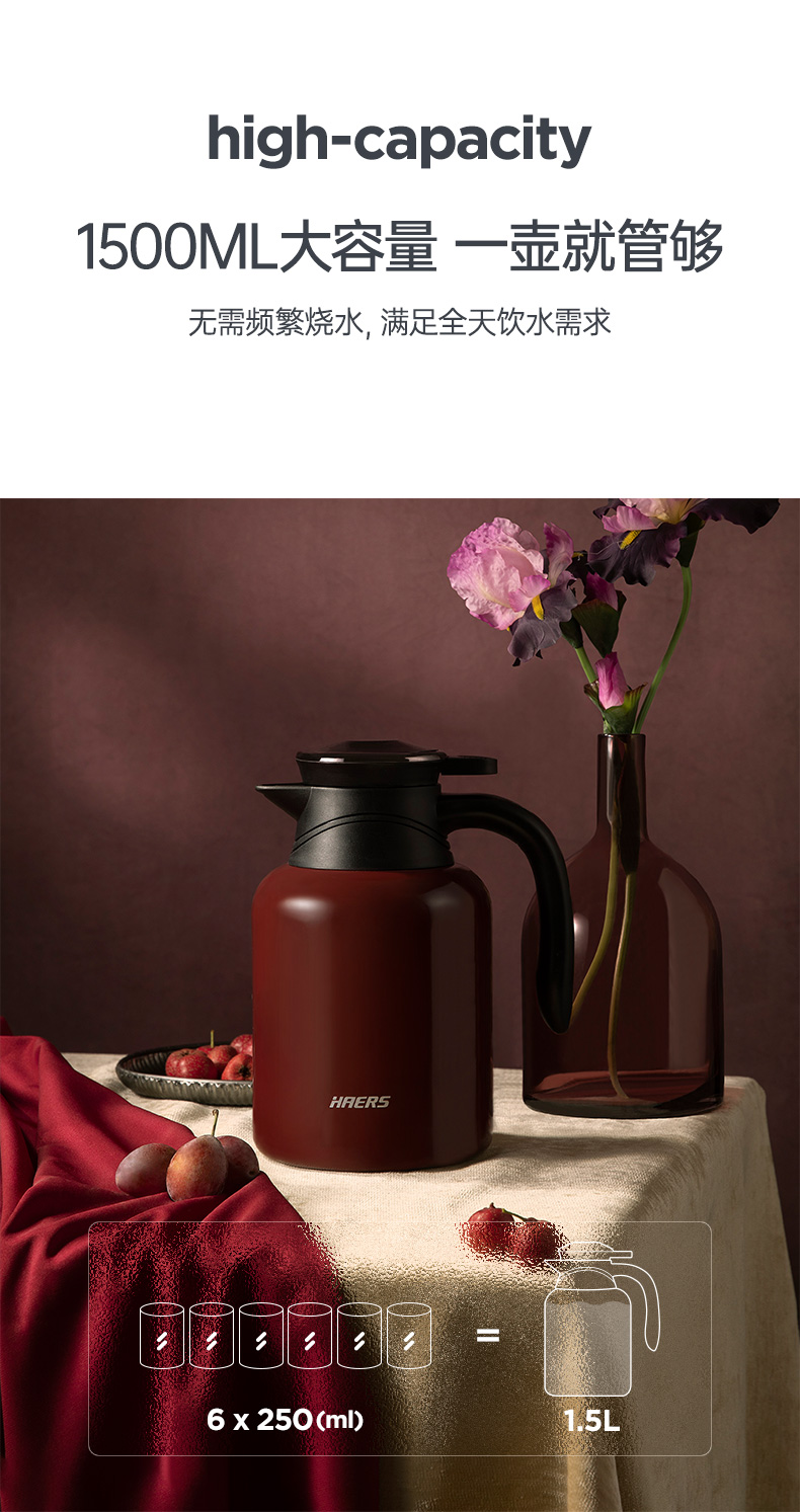 哈尔斯 真空数显保温壶 1500ml"HDM-1500-51 "(单位:个) 玄黑