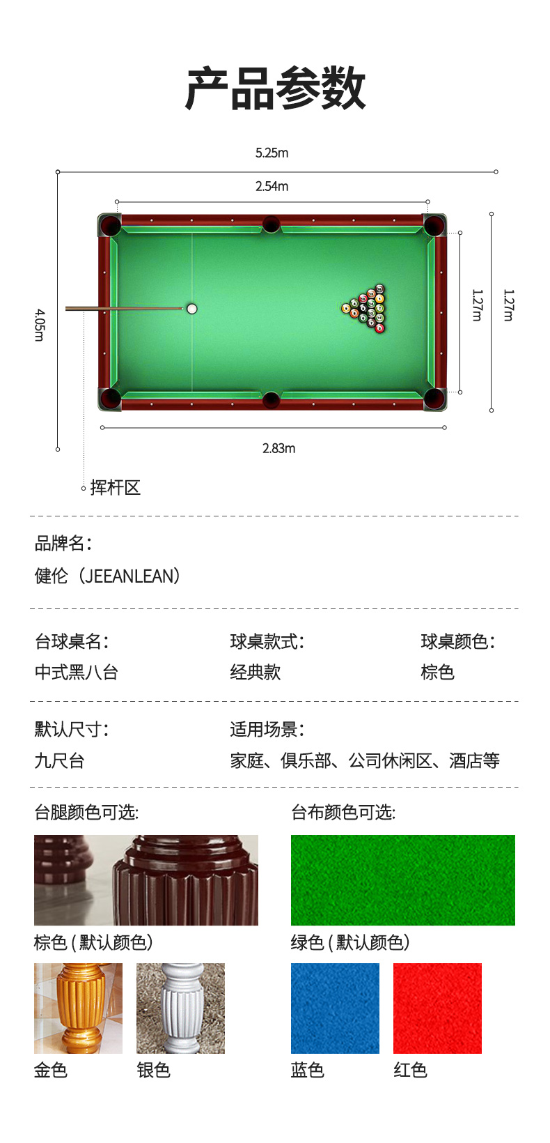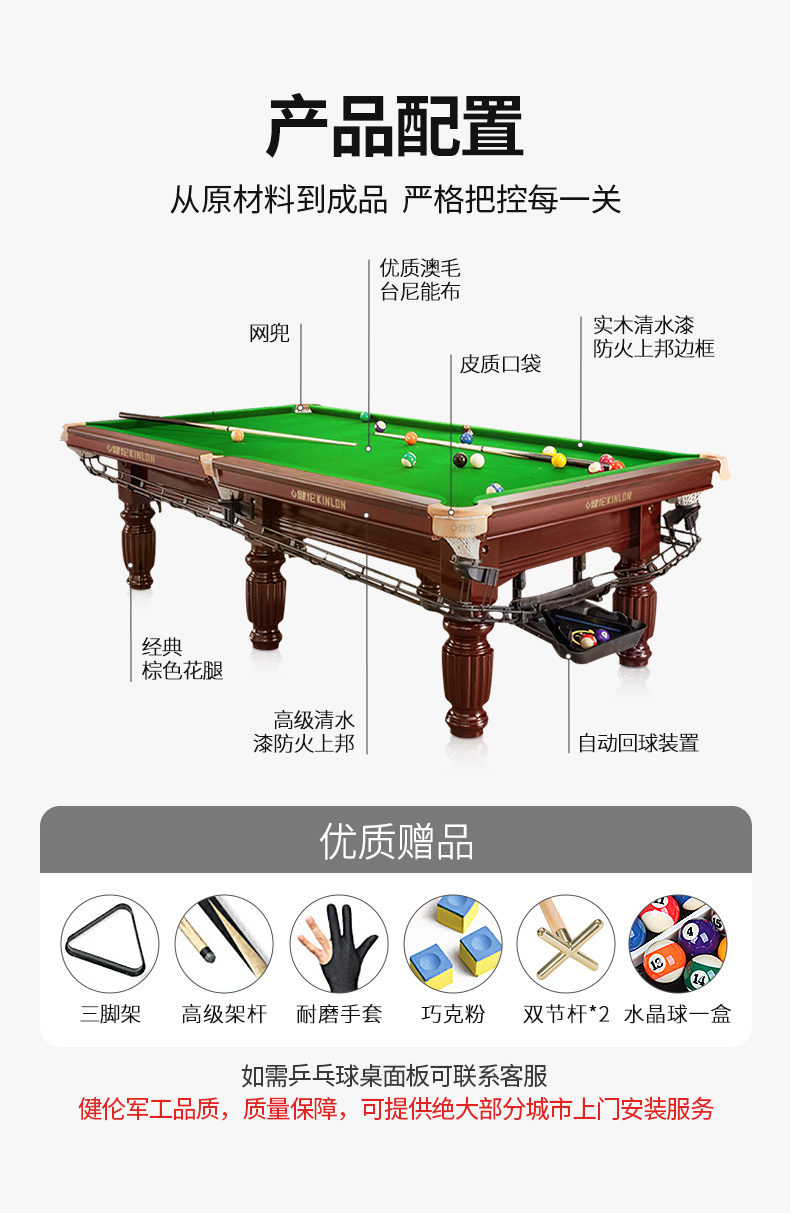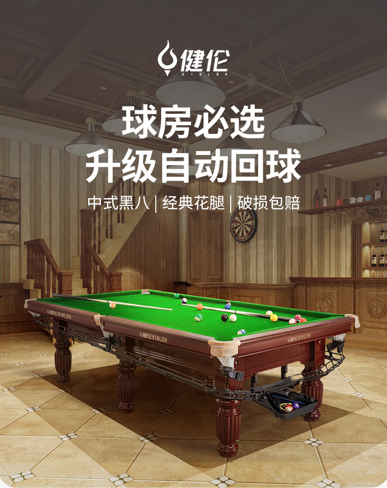 健伦(JEEANLEAN)JL-Z4153GCX 黑八顶配棕腿 8球台球桌 九尺台 军绿色