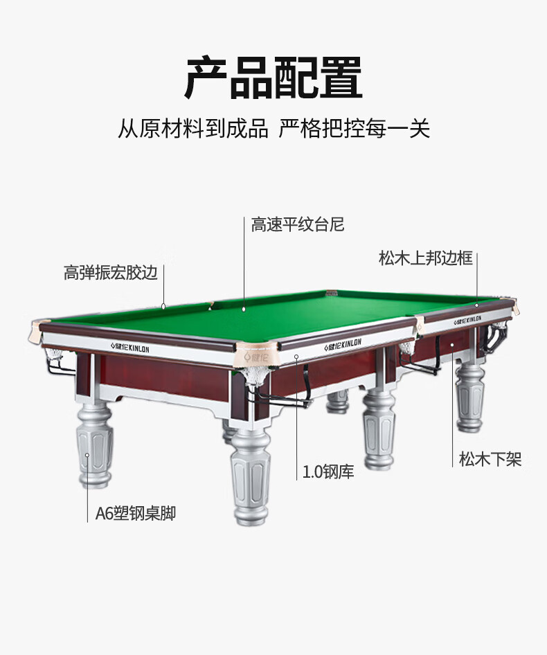 健伦(JEEANLEAN)JL-ZQT29钢库台球桌 成人家用美式黑8标准球桌室内中式 顶配版 军绿色