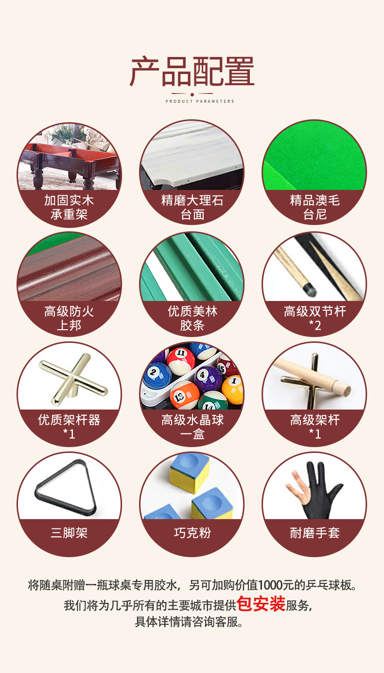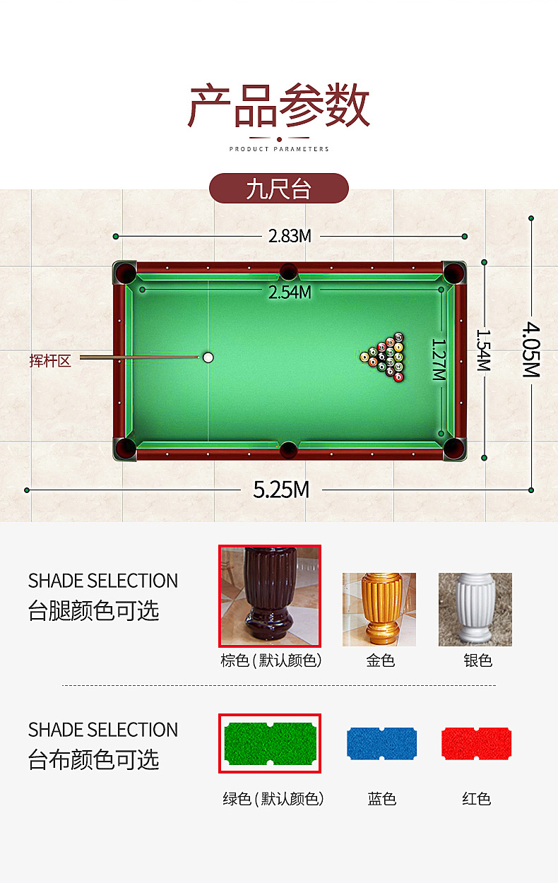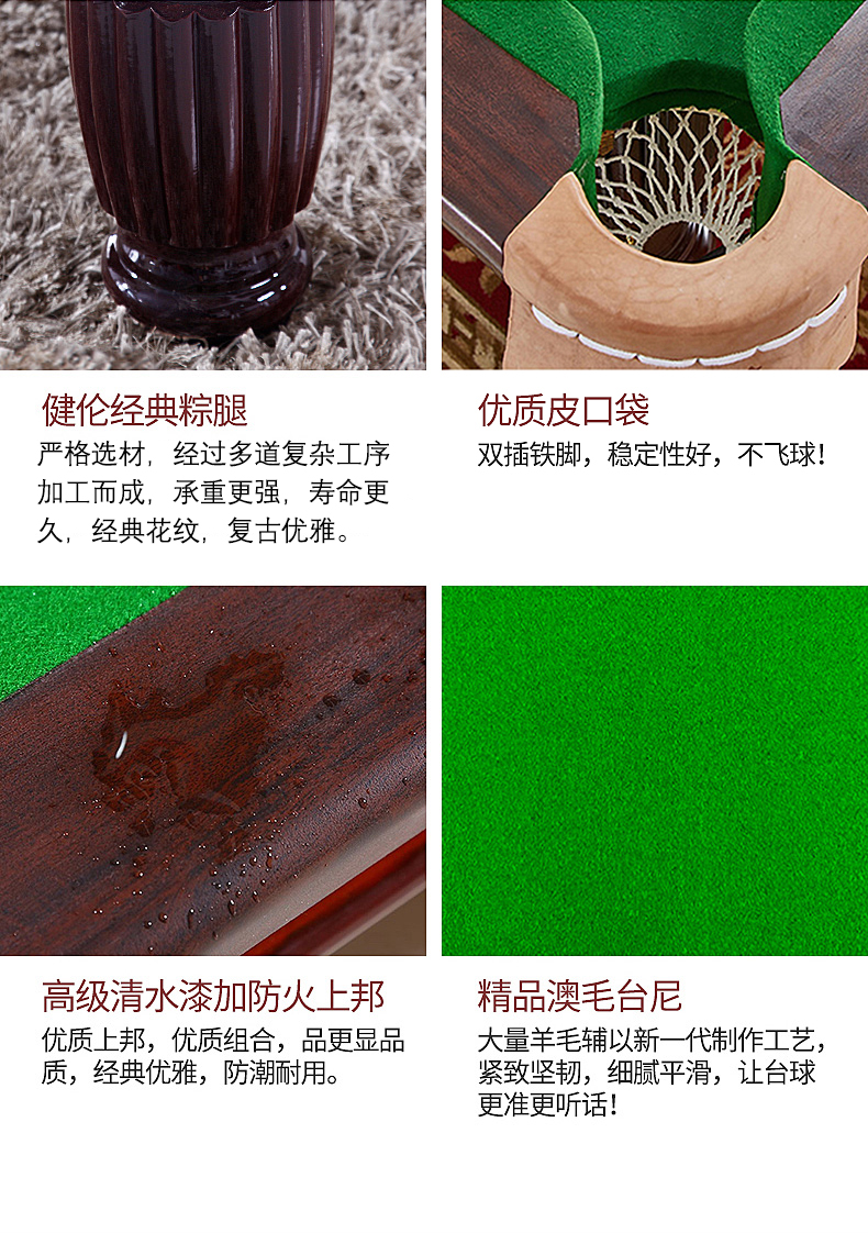 健伦(JEEANLEAN)JL-ZQT11 台球桌标准成人8球家用桌球桌黑八九尺台球桌 军绿色