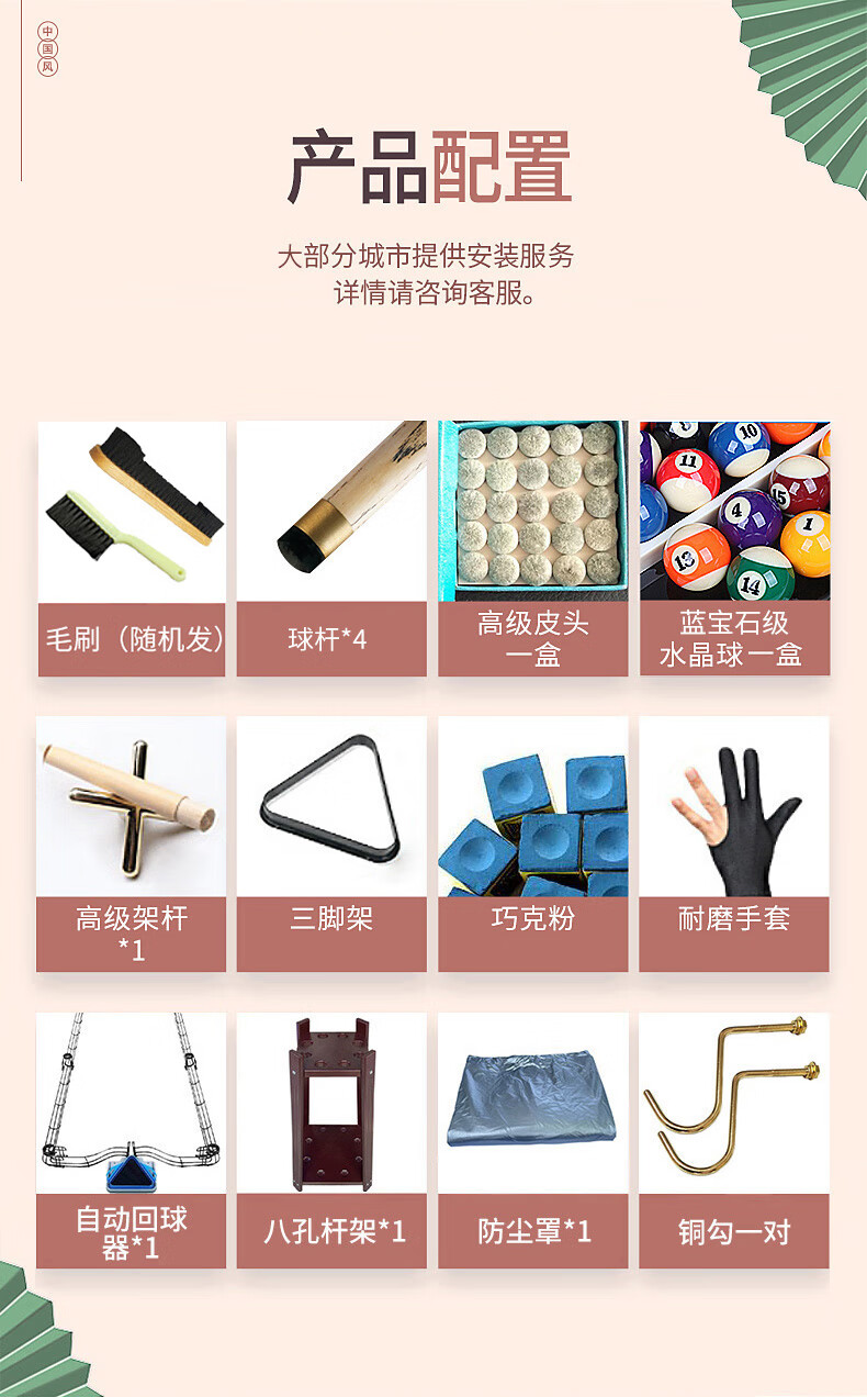 健伦(JEEANLEAN)JL-ZQT26 钢库台球桌 成人家用美式黑8标准球桌室内中式 顶配版 军绿色