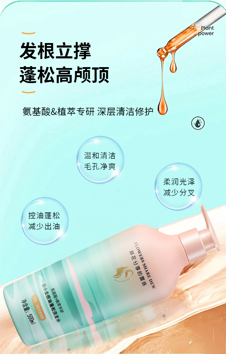 菲小主 氨基酸&植萃专研 控油蓬松洗发水 500ml/瓶