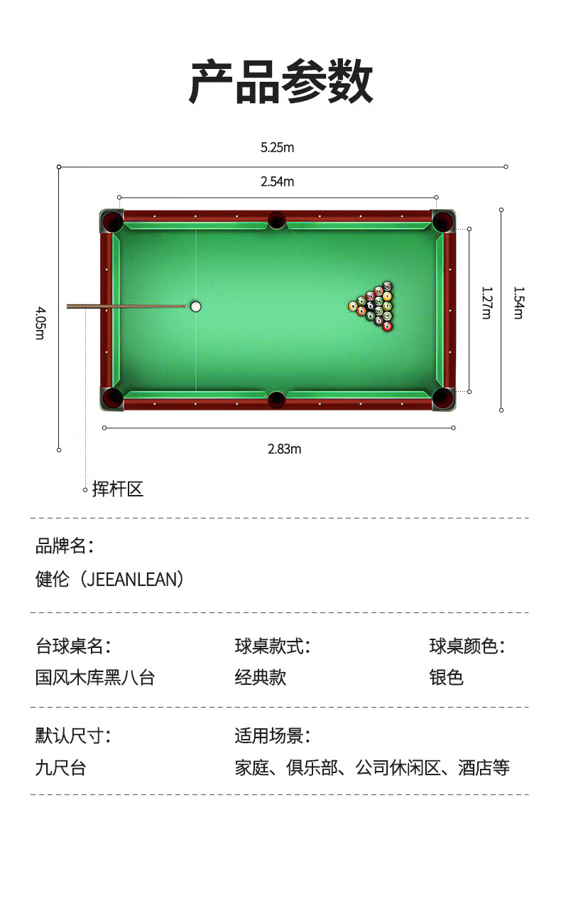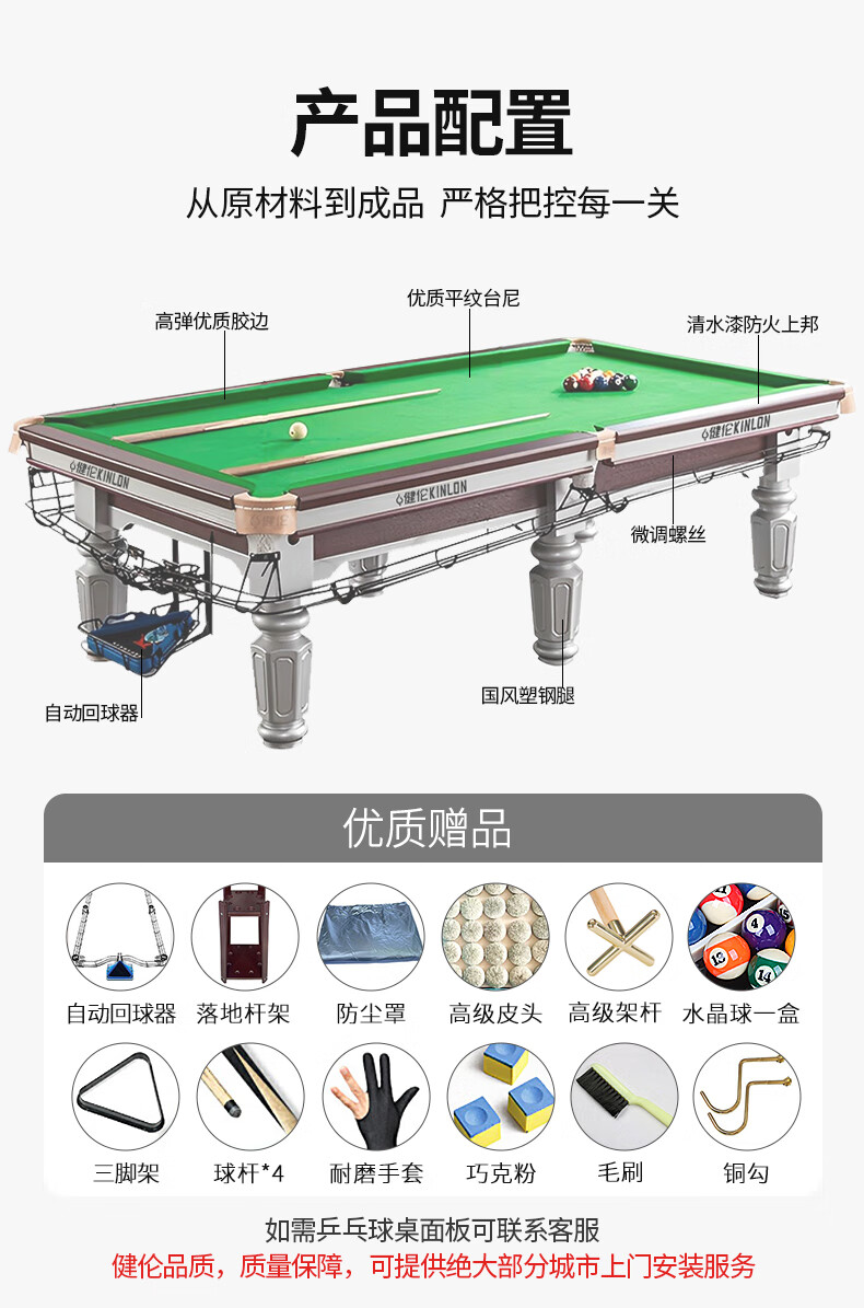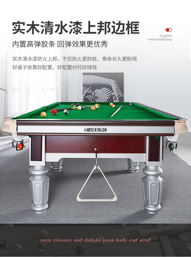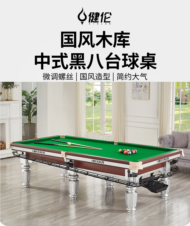 健伦(JEEANLEAN)JL-ZQT27木库台球桌标准成人家用美式黑八中式商用黑八 尊享版 军绿色