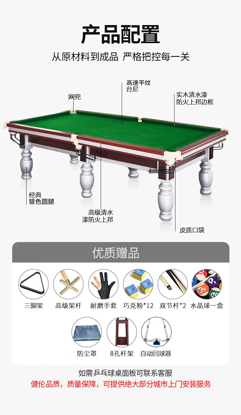 健伦(JEEANLEAN)JL-ZQT32标准台球桌 美式黑八九尺大理石家用商用高端娱乐桌球台 军绿色