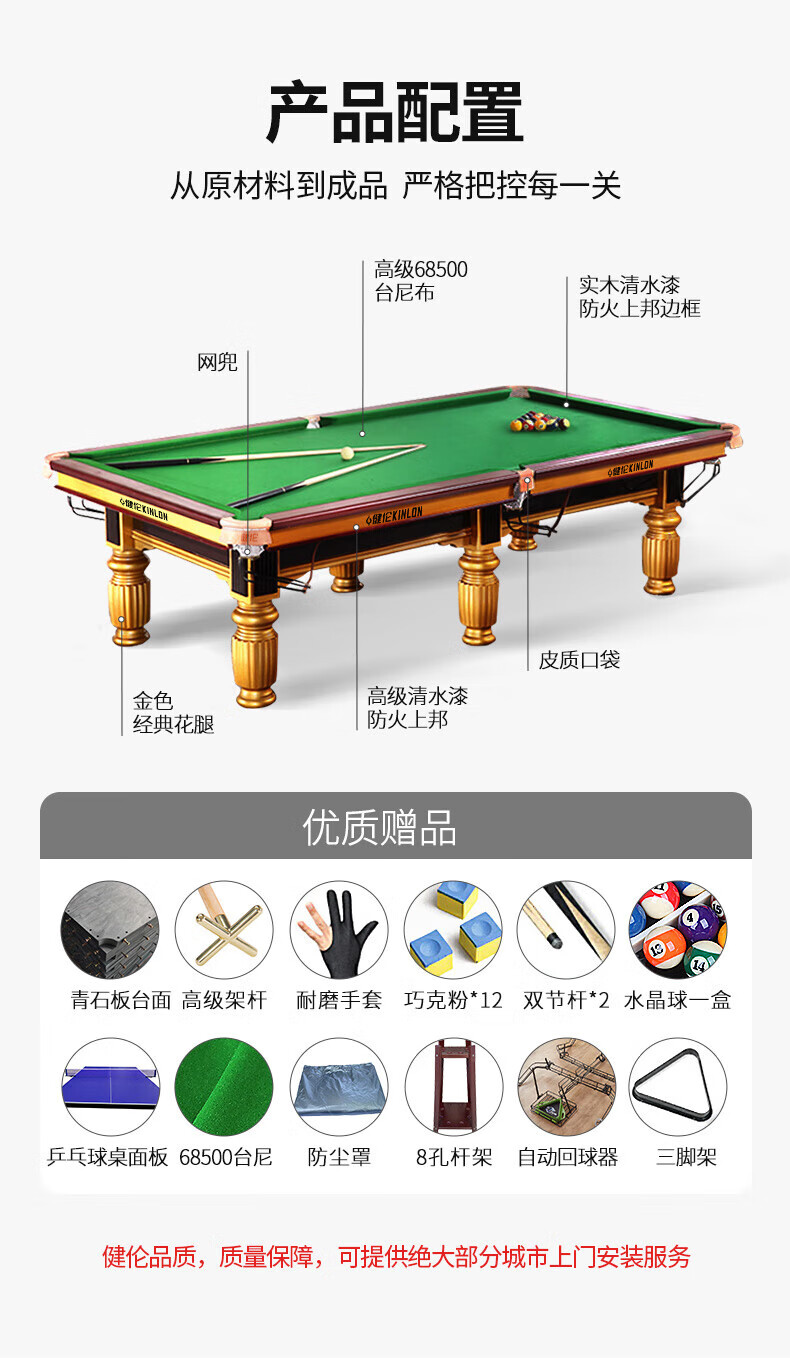 健伦(JEEANLEAN)JL-ZQT-A5S 台球桌钻石级顶配 九尺家用高端美式黑八 全包采购款 极光蓝