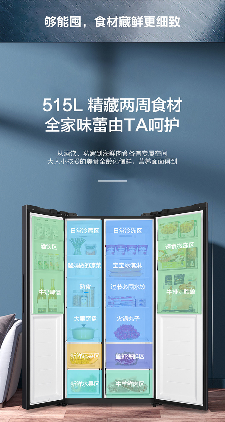 海尔(Haier) BCD-515WLHSSEDS9 风冷大冷冻对开门双门冰箱单位:台 星蕴银