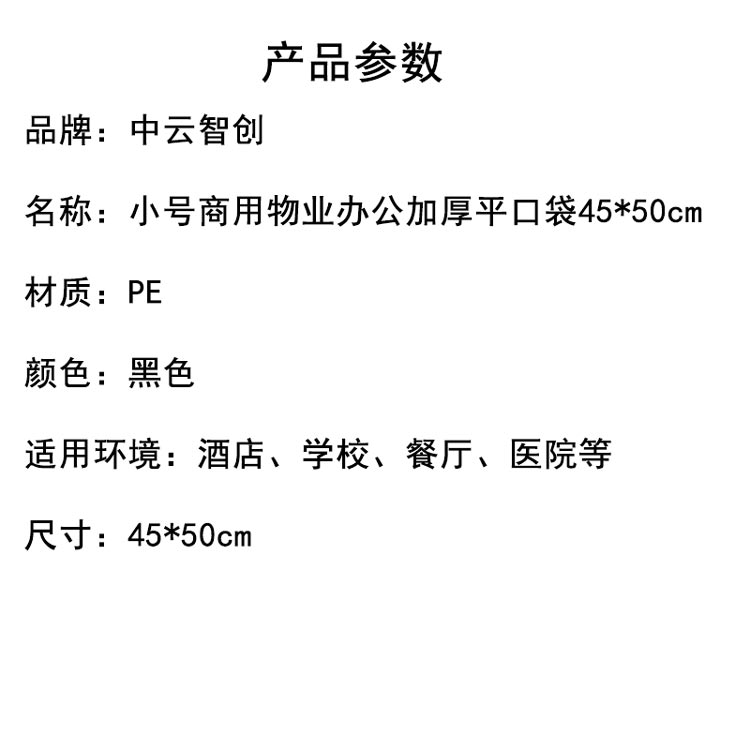 中云智创 小号商用物业办公加厚平口垃圾袋分类45*50cm黑色25个/卷*4卷装 黑色