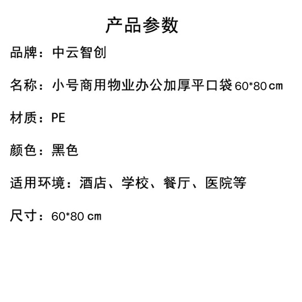 中云智创 中号商用物业办公加厚平口垃圾袋分类 60*80cm黑色50只/包*2包装 黑色