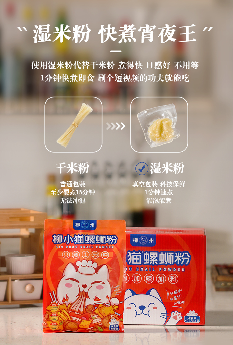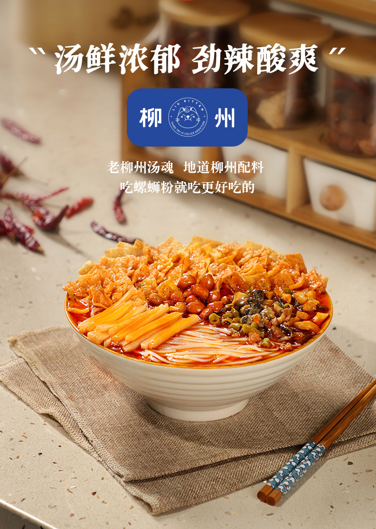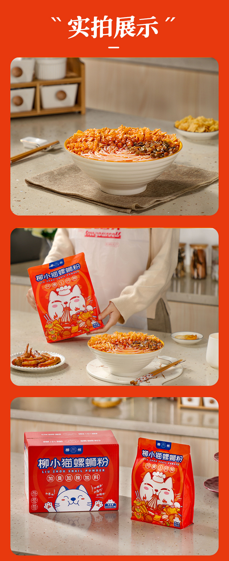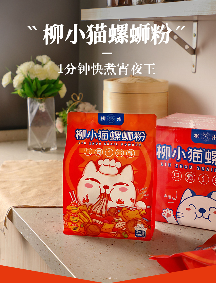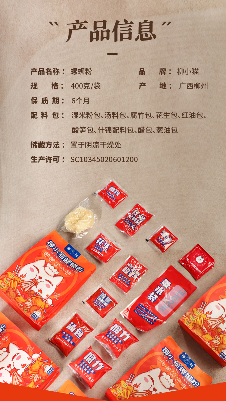 柳小猫螺蛳粉400g*3袋装礼盒装 快煮1分钟速食广西特产加辣加 拿铁色