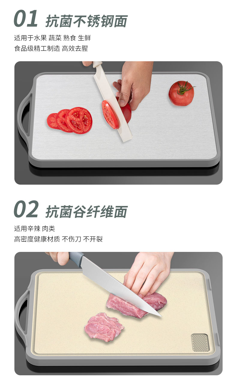 欧美达 匠系列-不锈钢双面菜板 JCB04 自然色