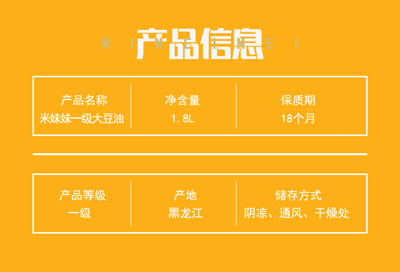 米妹妹(MIMEIMEI) 一级大豆 调和油 1.8L 金色(单位:桶)