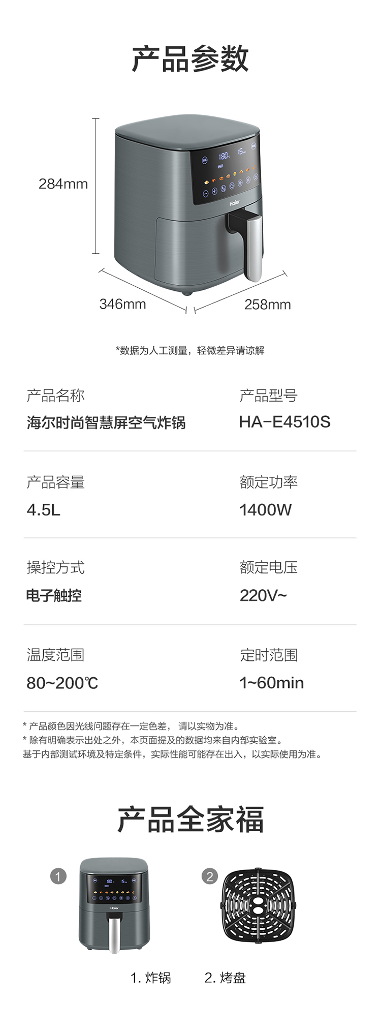 海尔(Haier)时尚智慧屏空气炸锅 HA-E4510S(台) 灰色