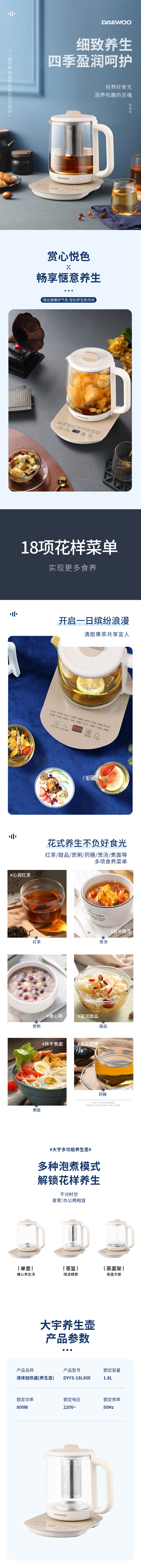大宇(DAEWOO)1.8L多功能养生壶DYYS-18L80E 单位(台) 流苏白