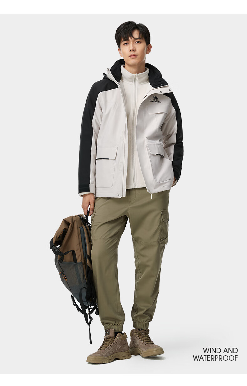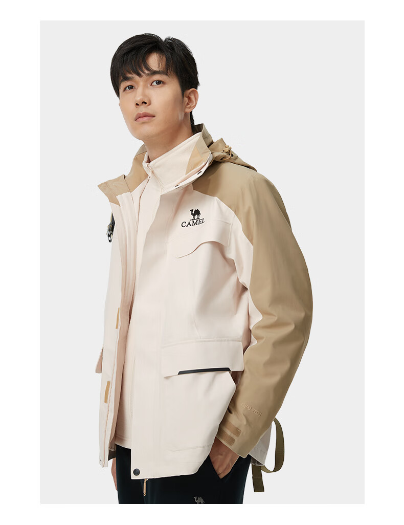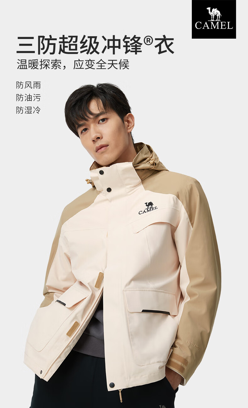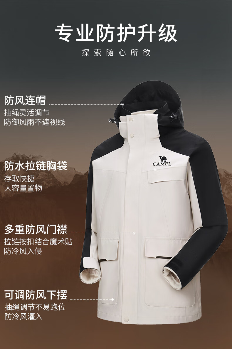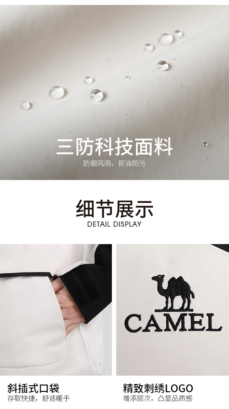 骆驼女装休闲外套2023秋冬新款防风防水三合一冲锋衣女外套可拆卸 A23CA31070 件 浅摩卡/流云白 M