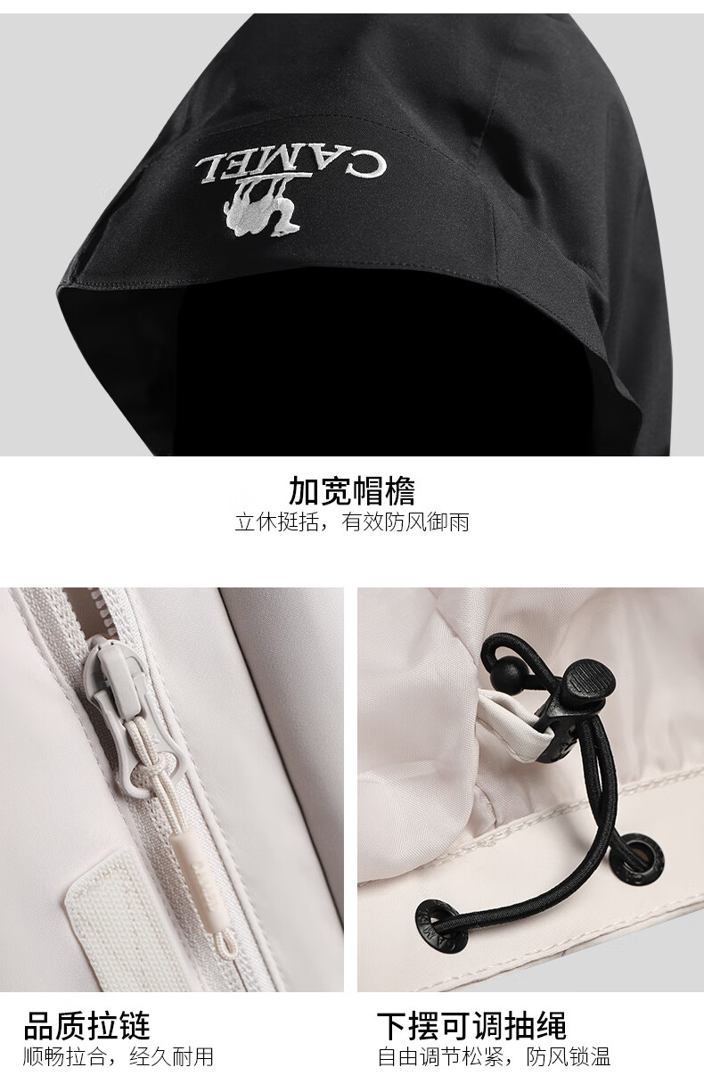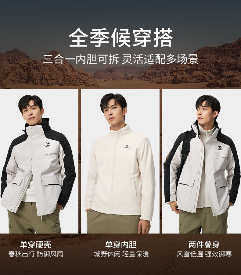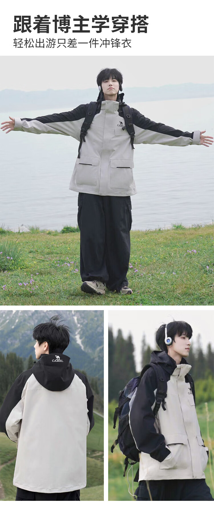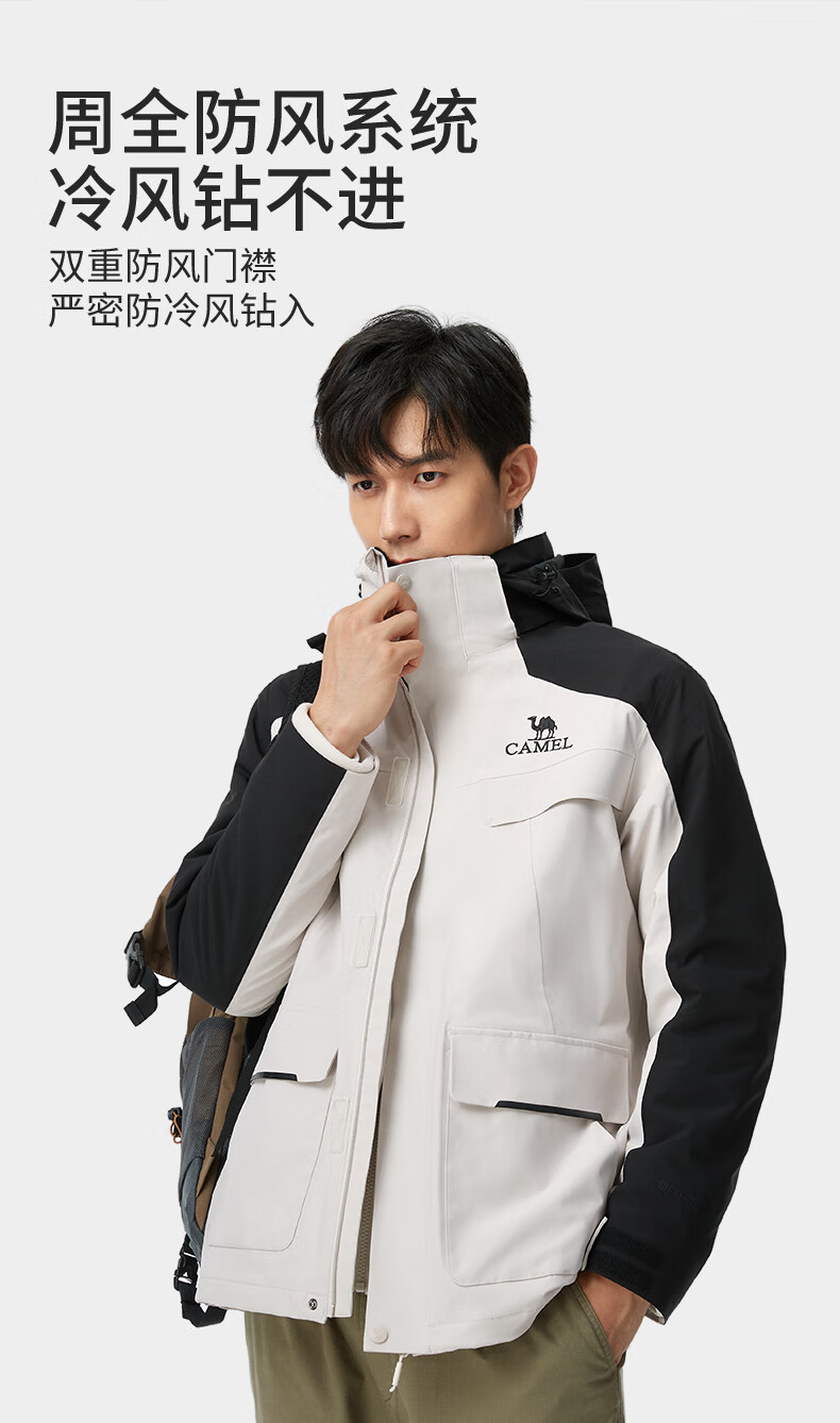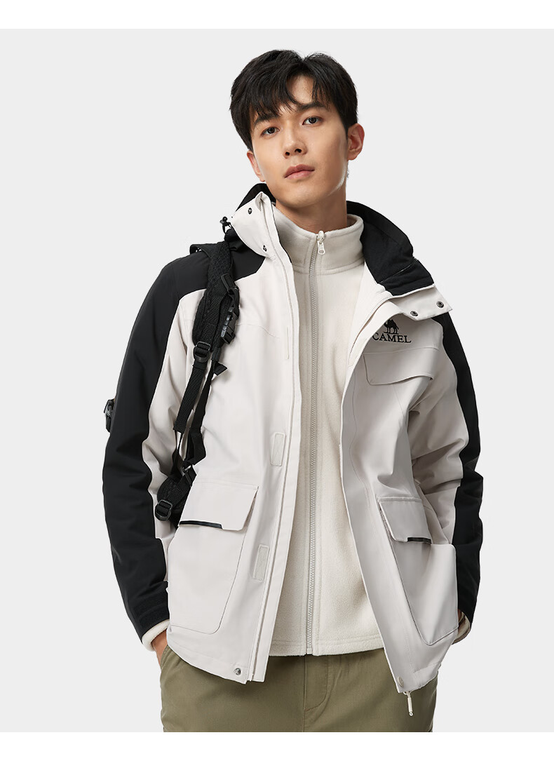 骆驼女装休闲外套2023秋冬新款防风防水三合一冲锋衣女外套可拆卸 A23CA31070 件 浅摩卡/流云白 M