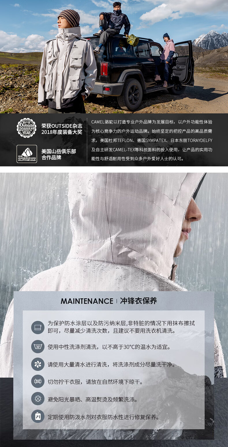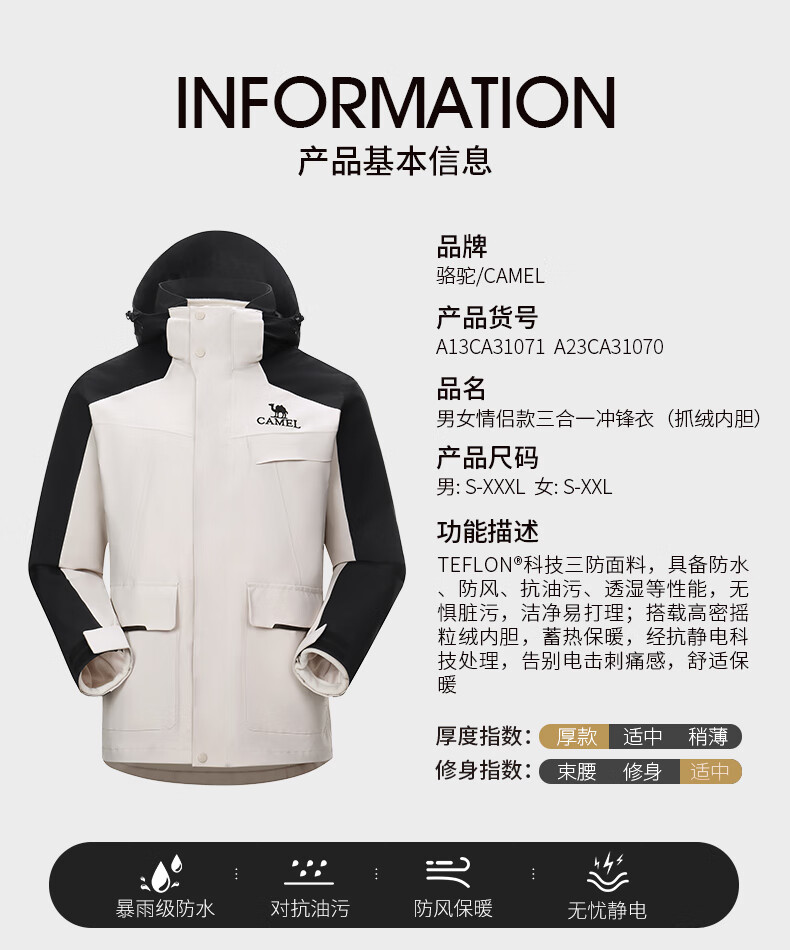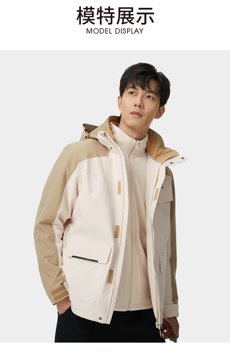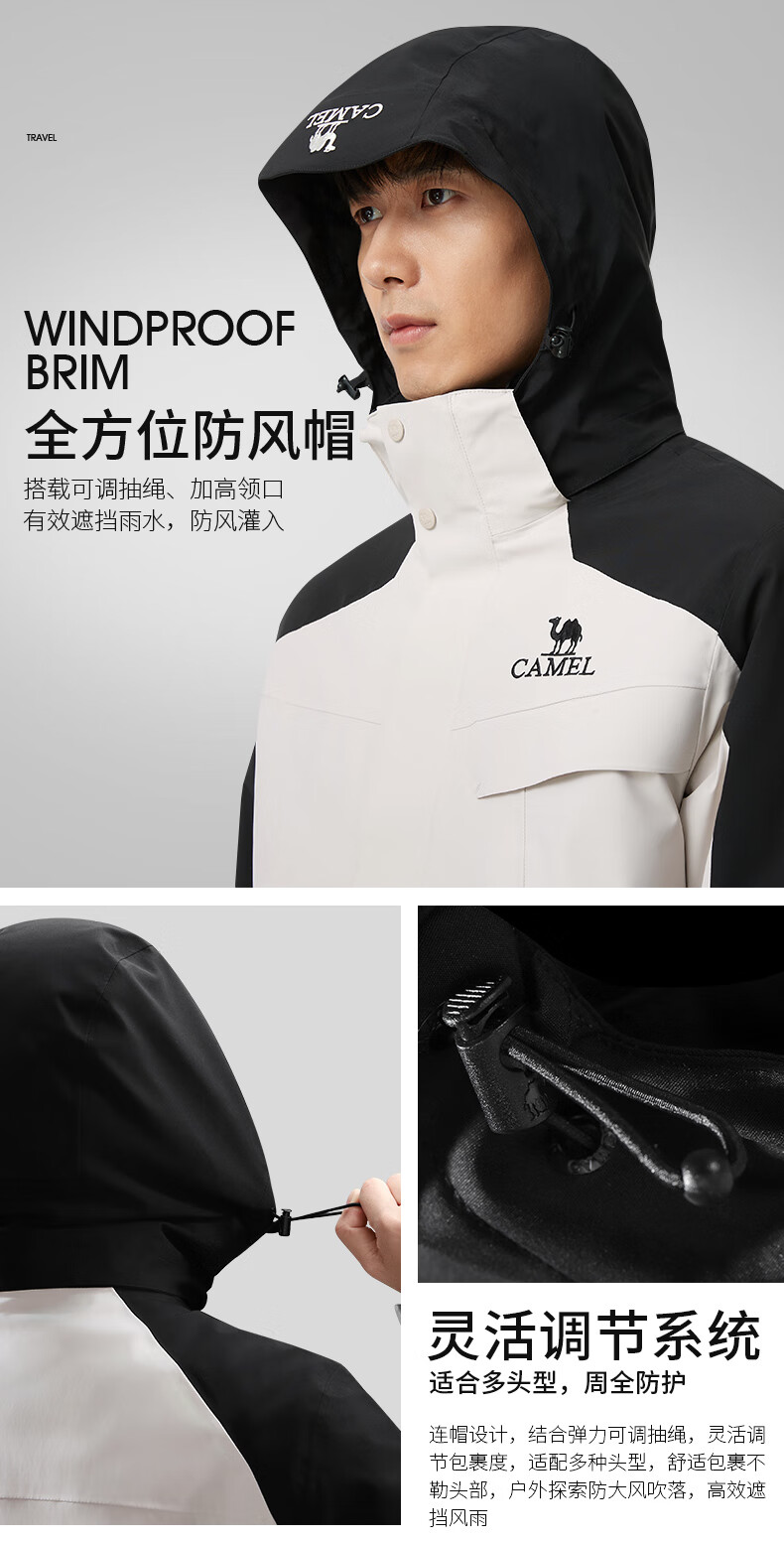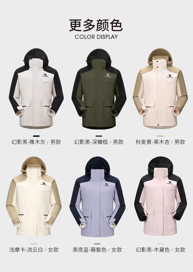 骆驼女装休闲外套2023秋冬新款防风防水三合一冲锋衣女外套可拆卸 A23CA31070 件 浅摩卡/流云白 M