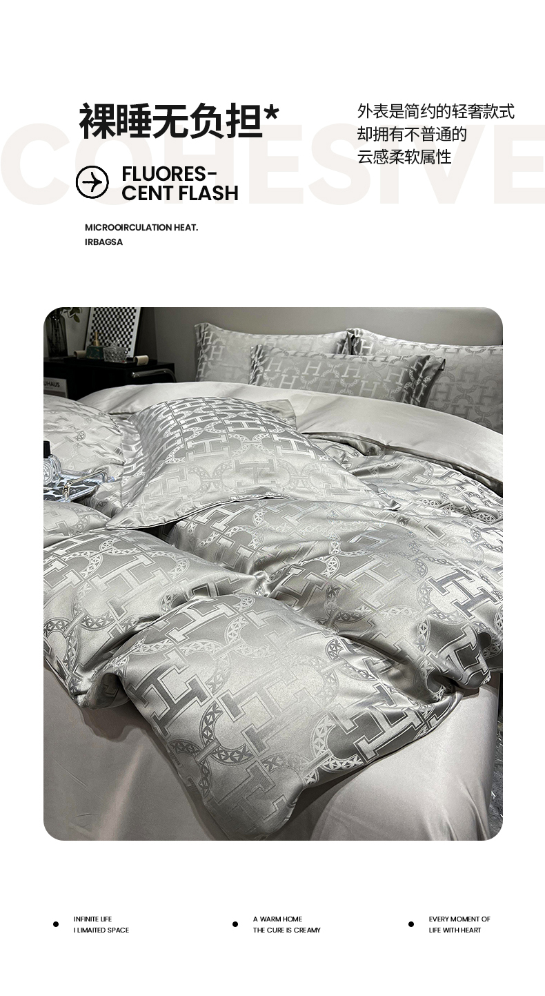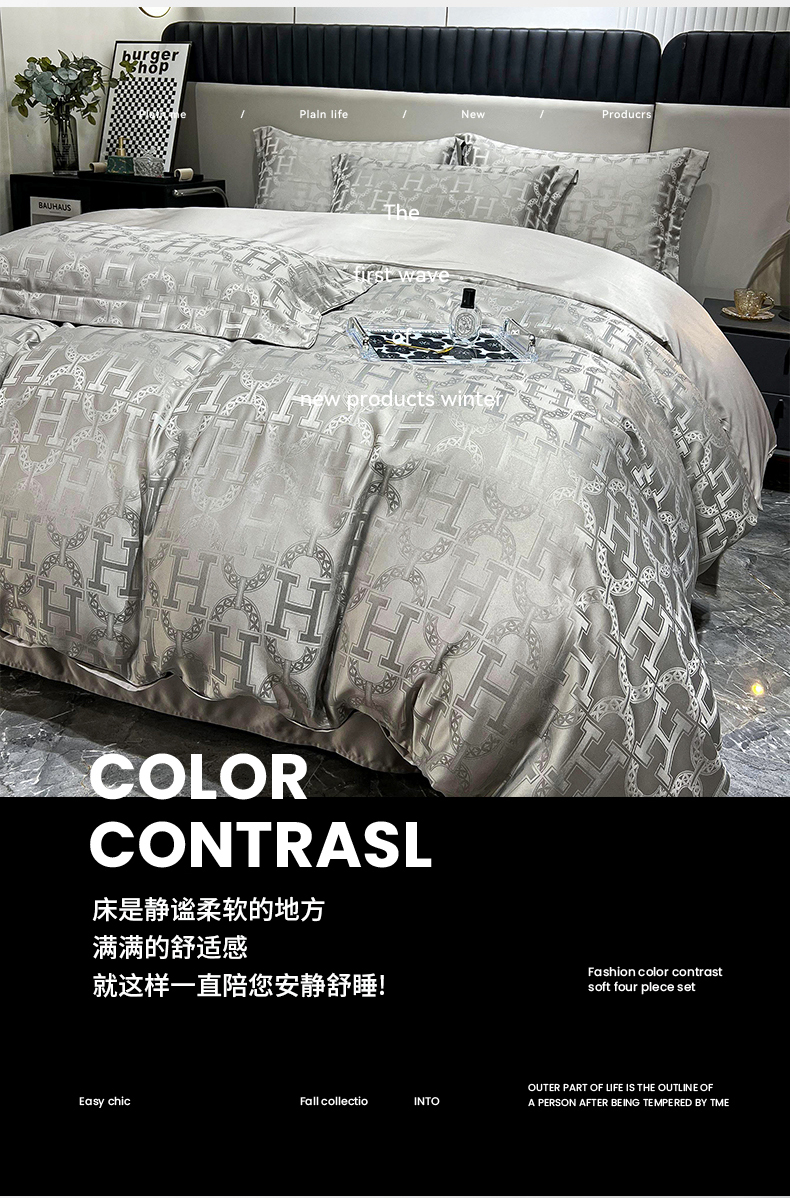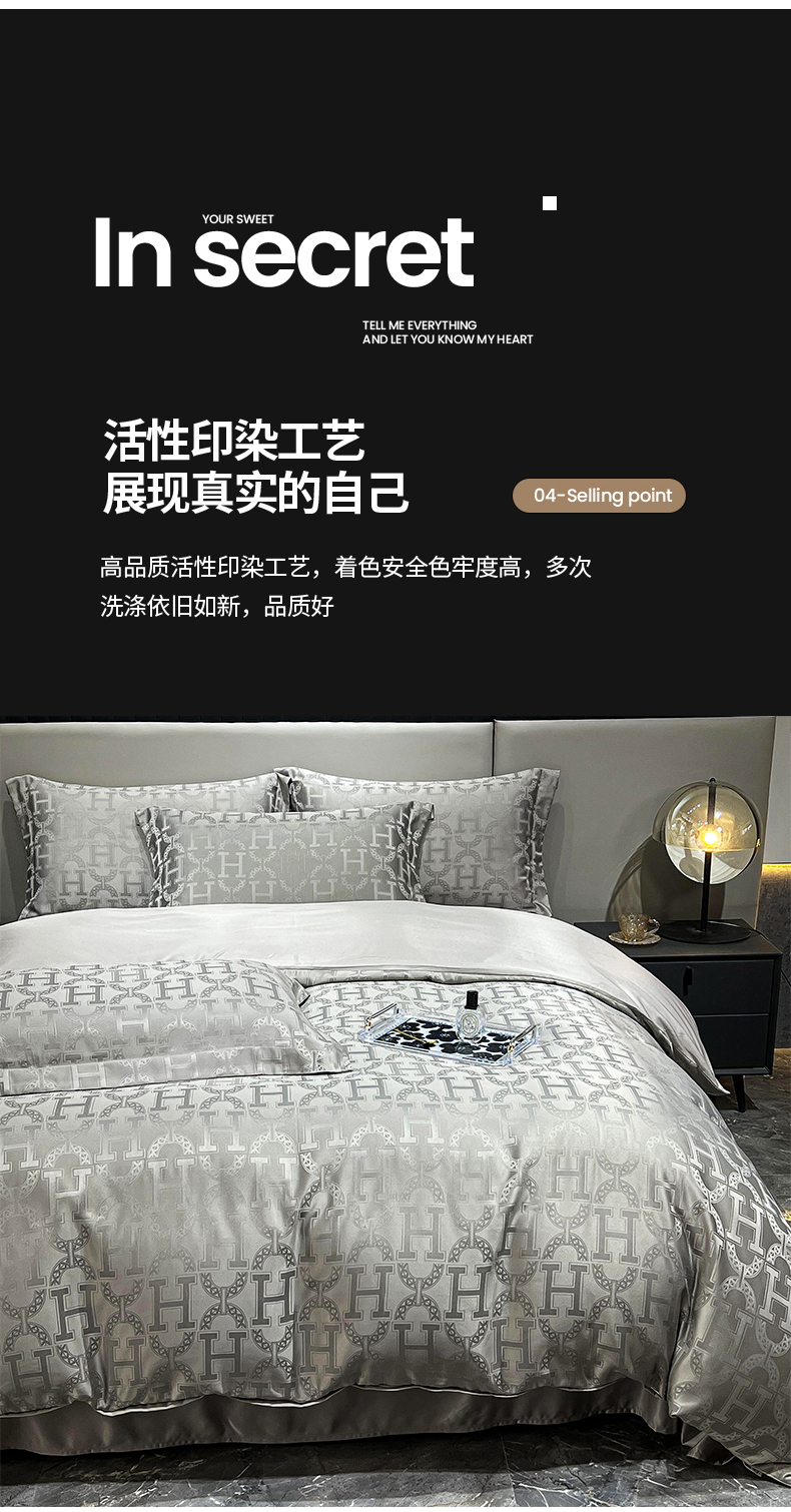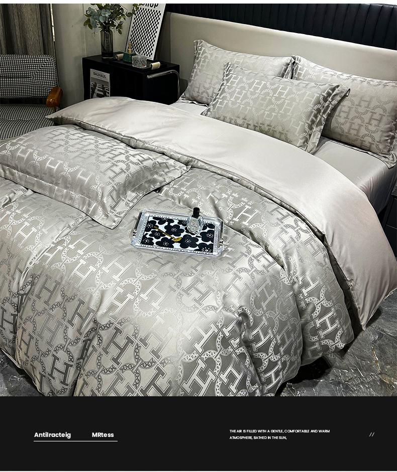 帛享家纺 欧式轻奢提花四件套 BXQQY-35801单位(套) 繁华-灰 四件套(适合1.5/1.8m床使用)