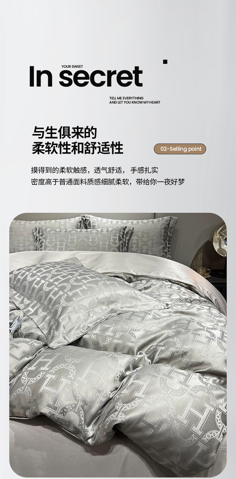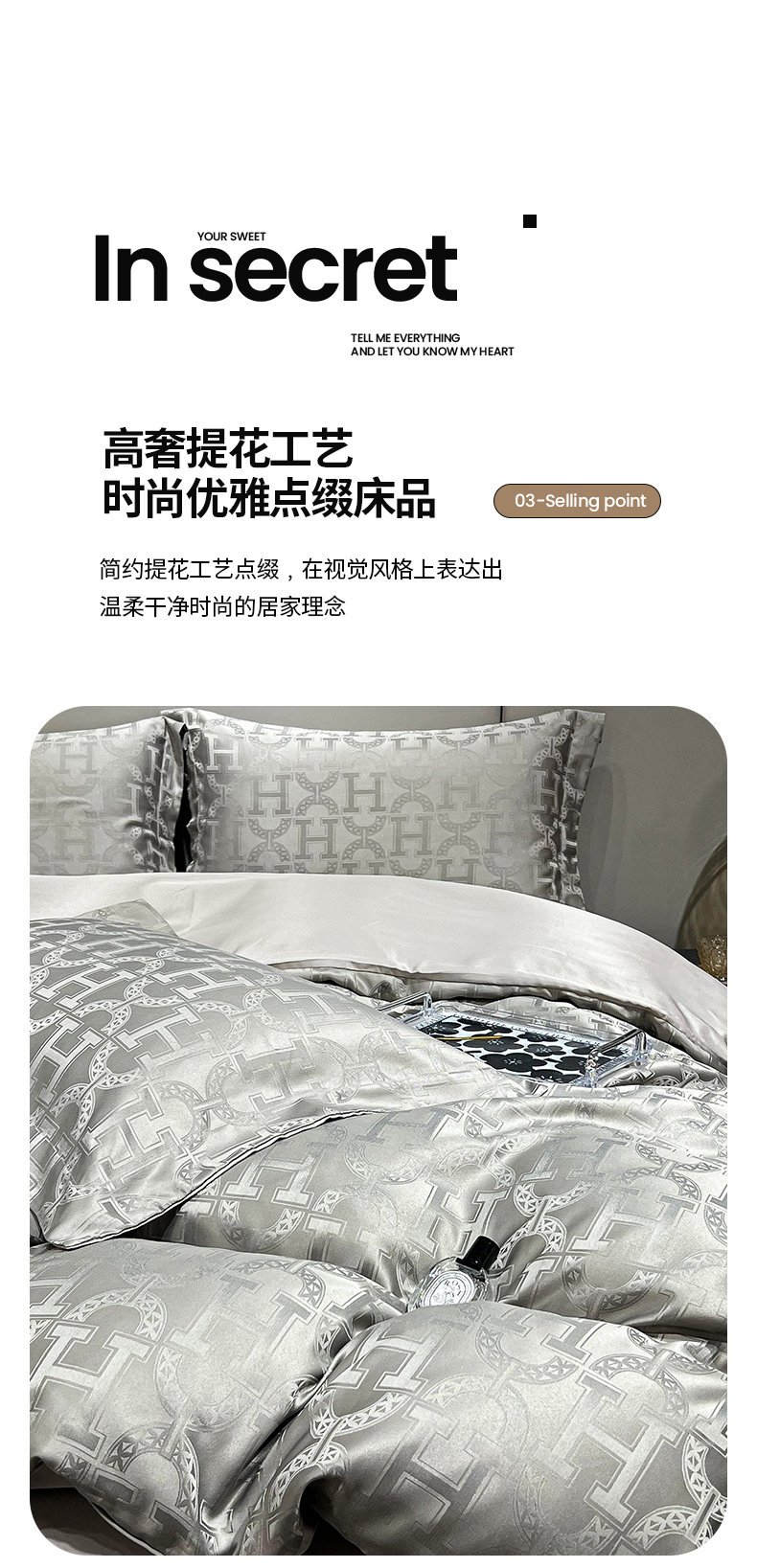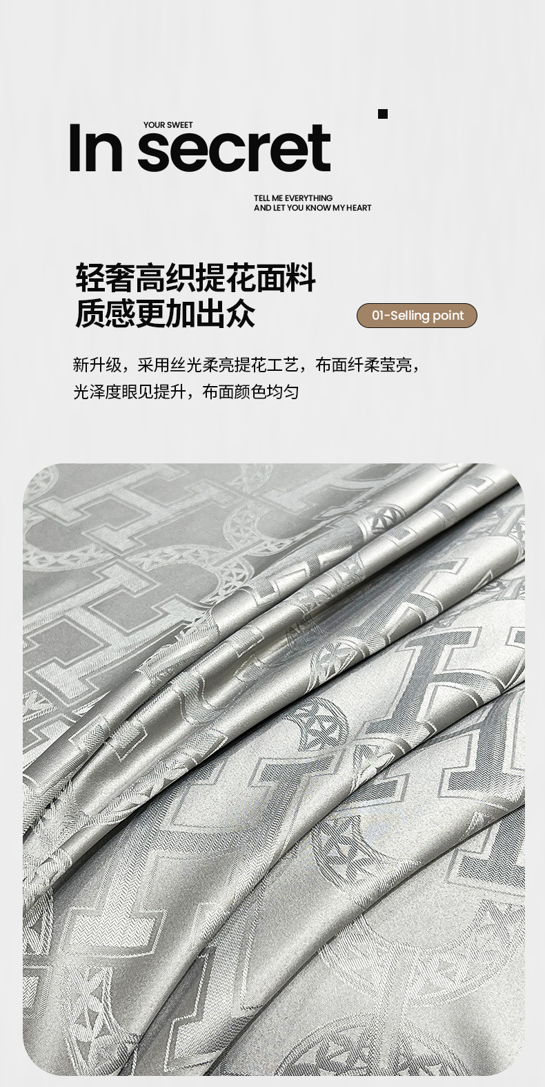 帛享家纺 欧式轻奢提花四件套 BXQQY-35801单位(套) 繁华-灰 四件套(适合1.5/1.8m床使用)