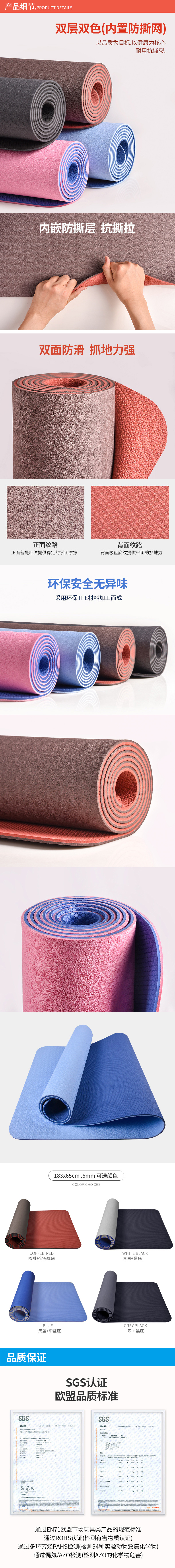 三极 TP1506 TPE双层双色防滑瑜伽垫 183*65cm/6mm 单位:块 咖啡+宝石红