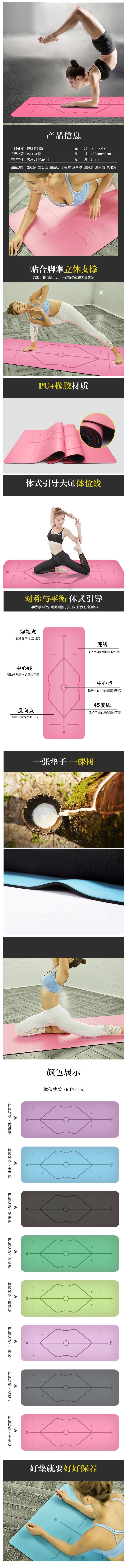 三极 TP1526 PU天然橡胶体位线瑜伽垫 183*68*0.5cm 单位:块 黑色