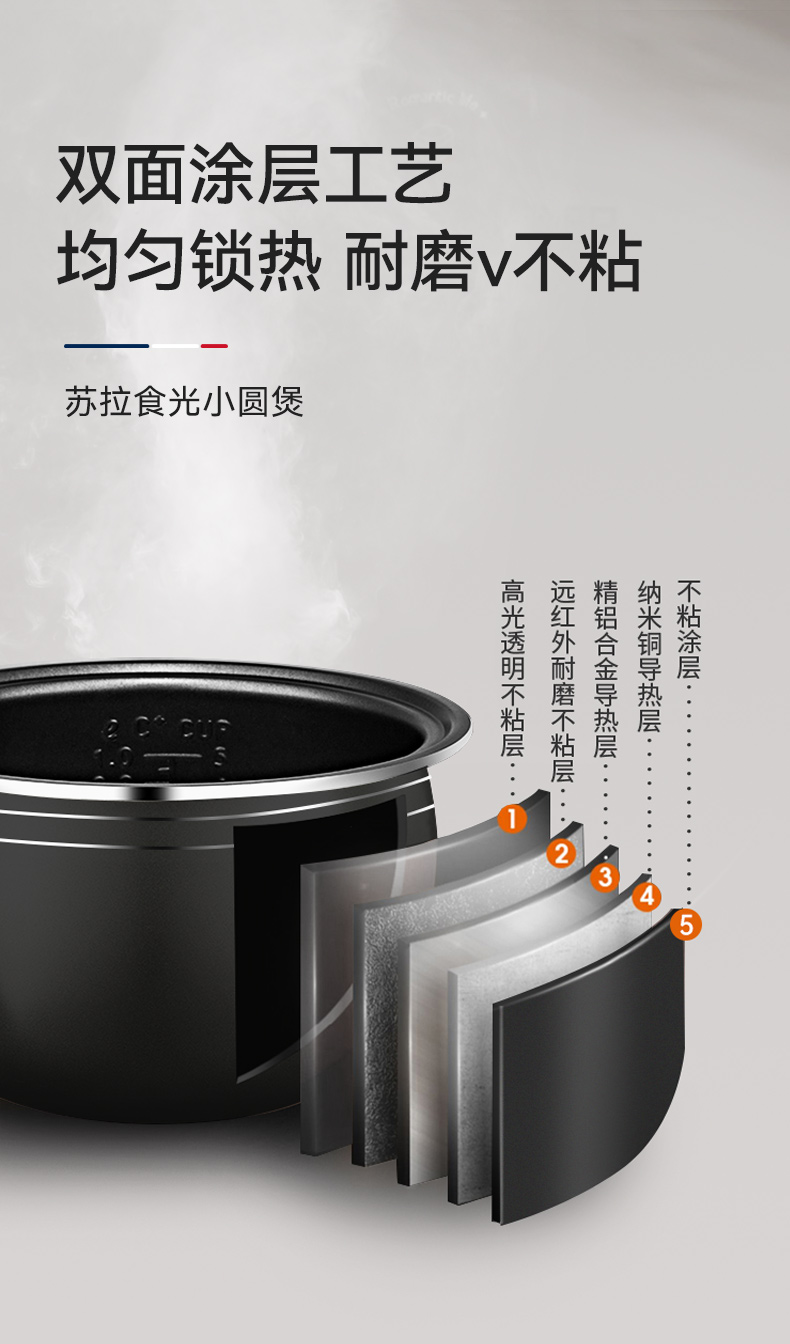 苏拉食光电饭煲F05A1老式家用2~6人圆饭煲西施煲 5L(单位:台) 自然色