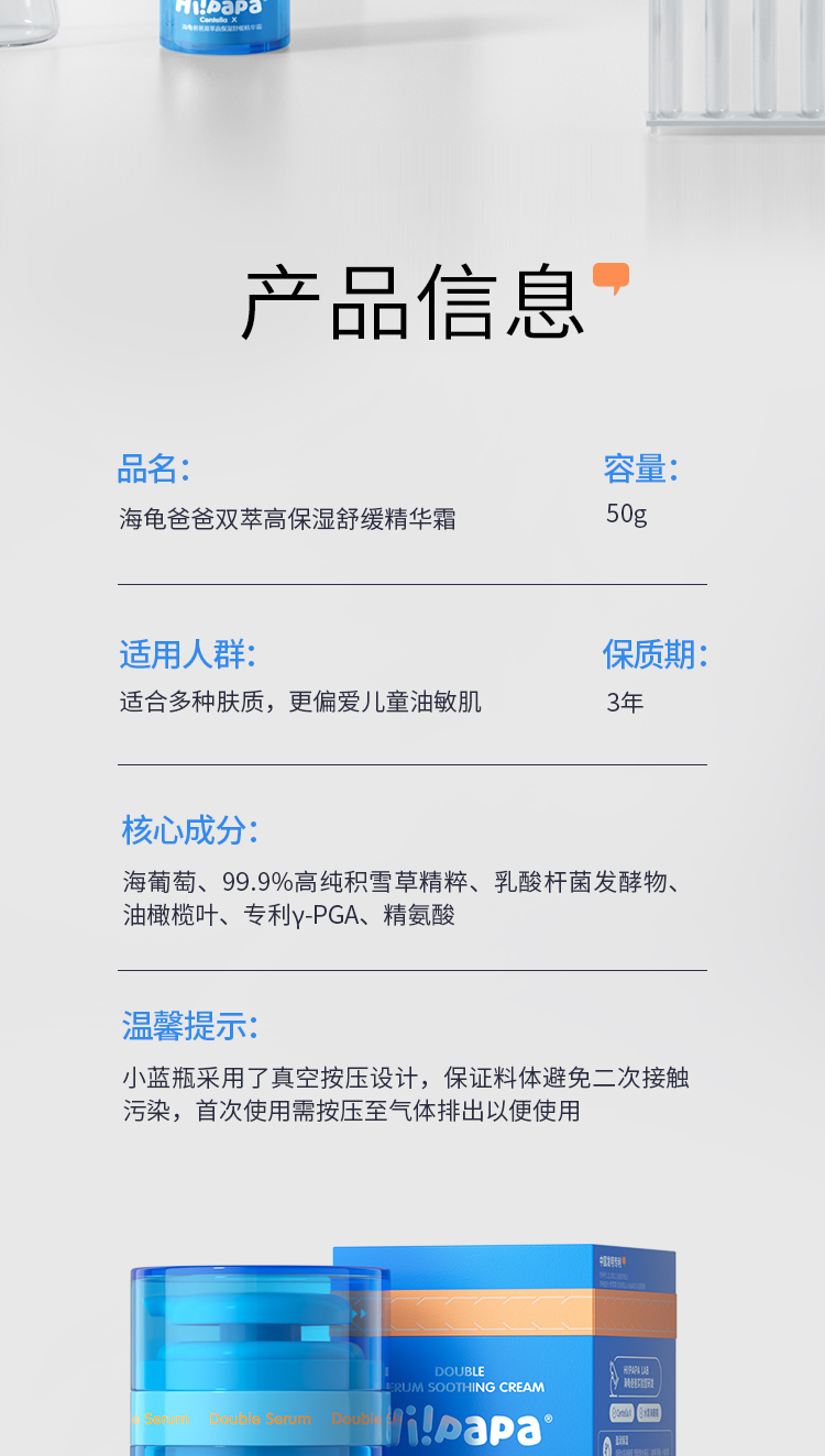 海龟爸爸双萃高保湿舒缓精华霜 50g(单位:瓶) 深蓝色