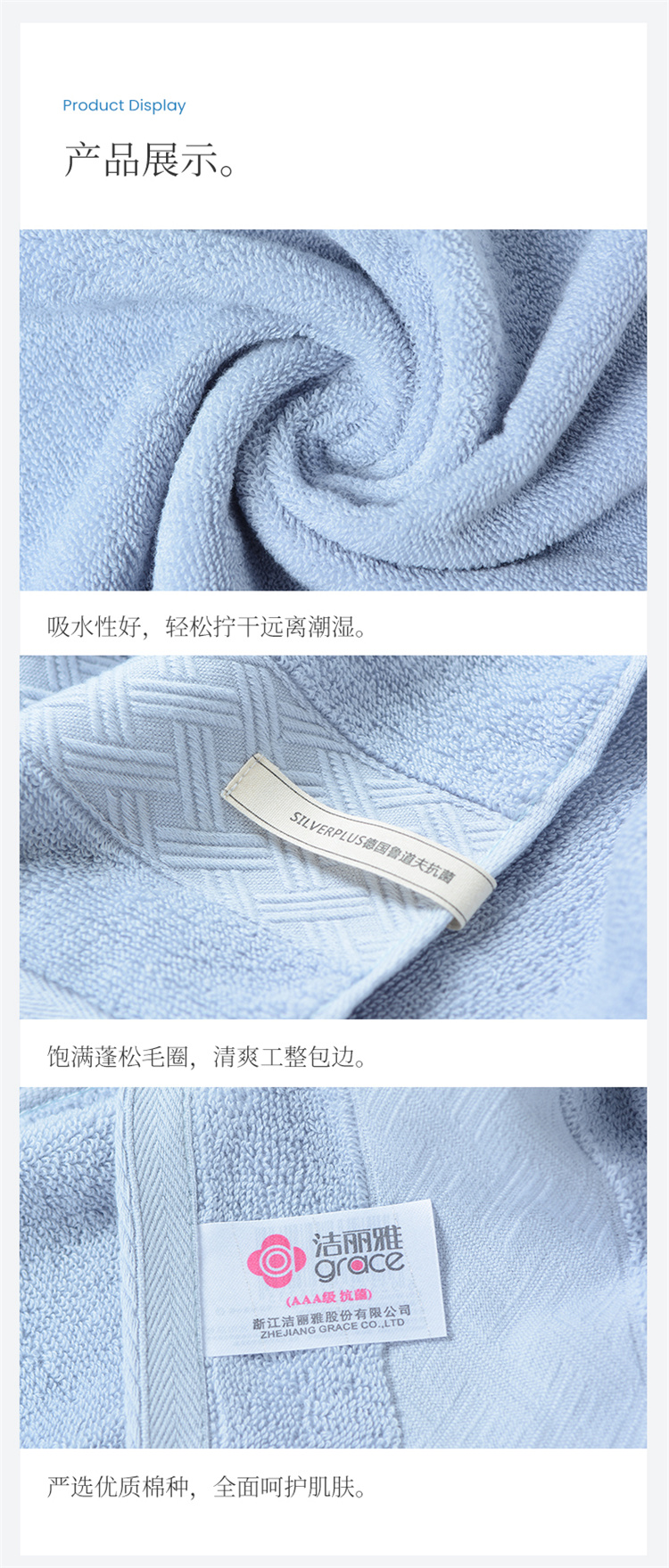洁丽雅毛巾W1240 纯棉洗脸家用成人不掉毛柔软全棉吸水抗菌加厚面巾2(单位:条) 2条(白1兰1)