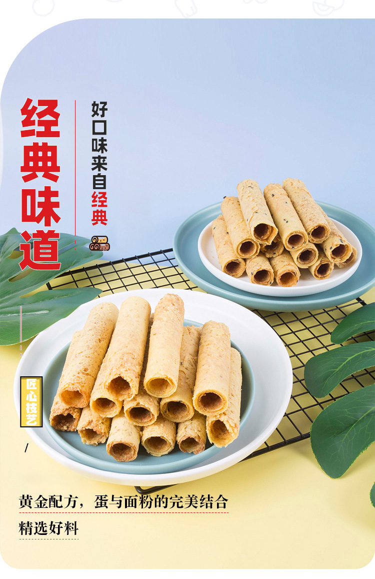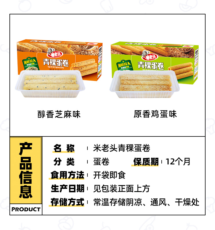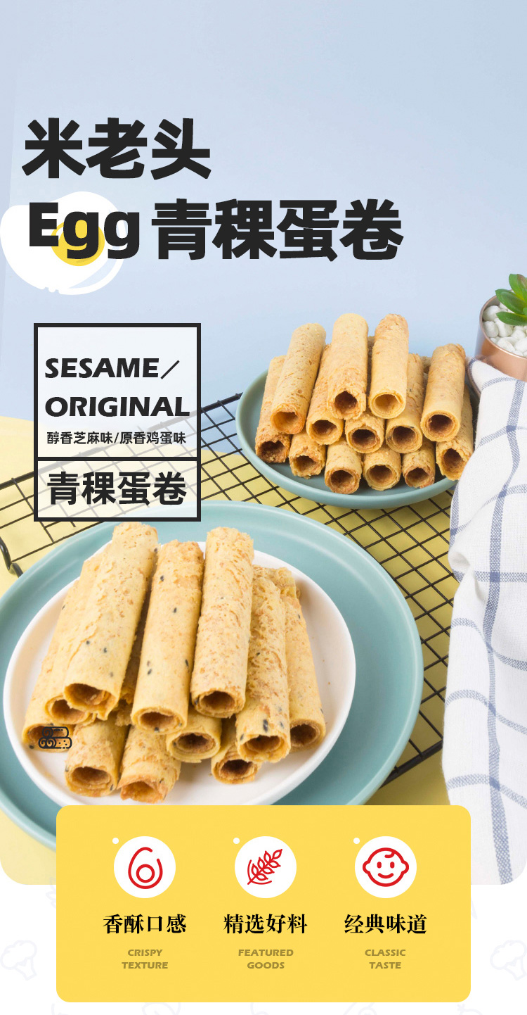 米老头青稞蛋卷手工鸡蛋酥鸡蛋味108*2盒老式手工鸡蛋卷酥脆饼干解馋零食小吃 白色