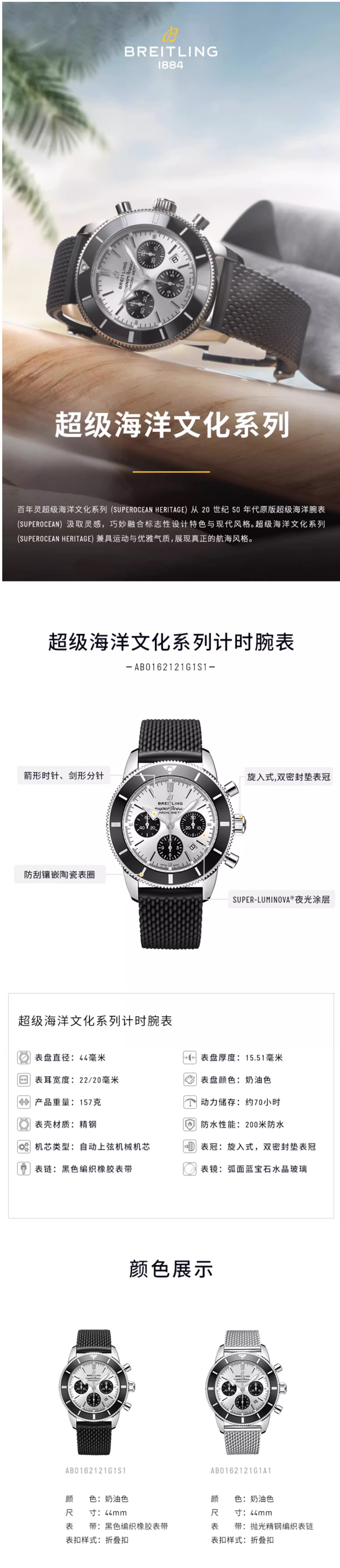 百年灵(BREITLING)超级海洋文化系列机械44男表 AB0162121G1S1(单位:块) 白色